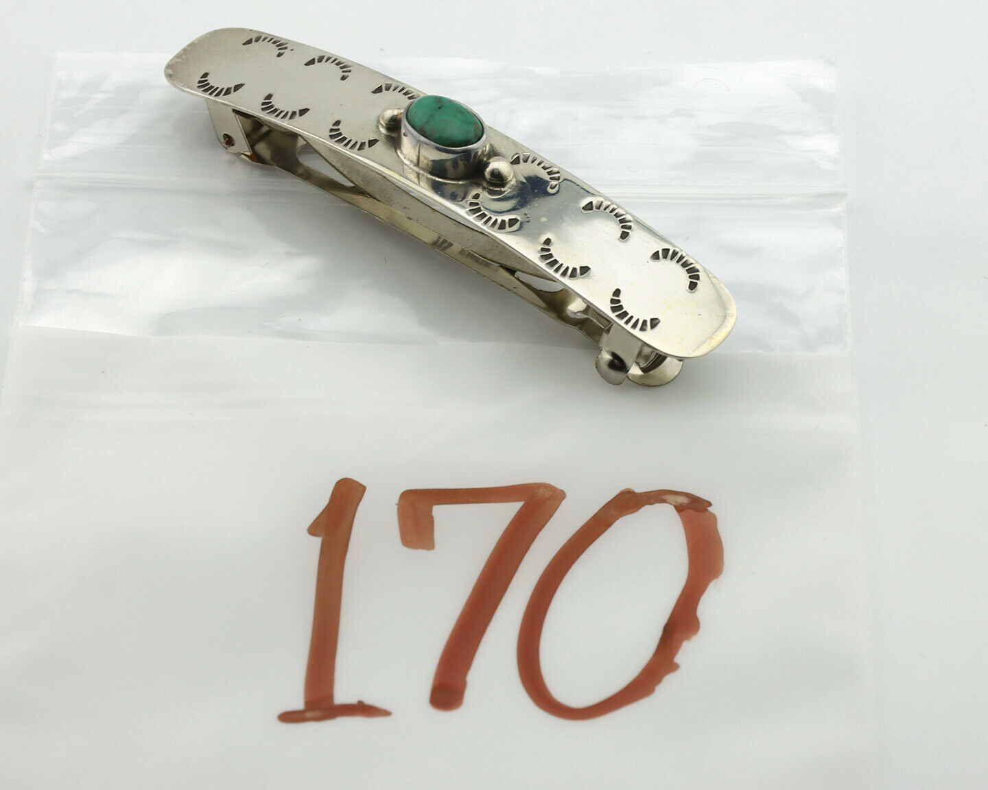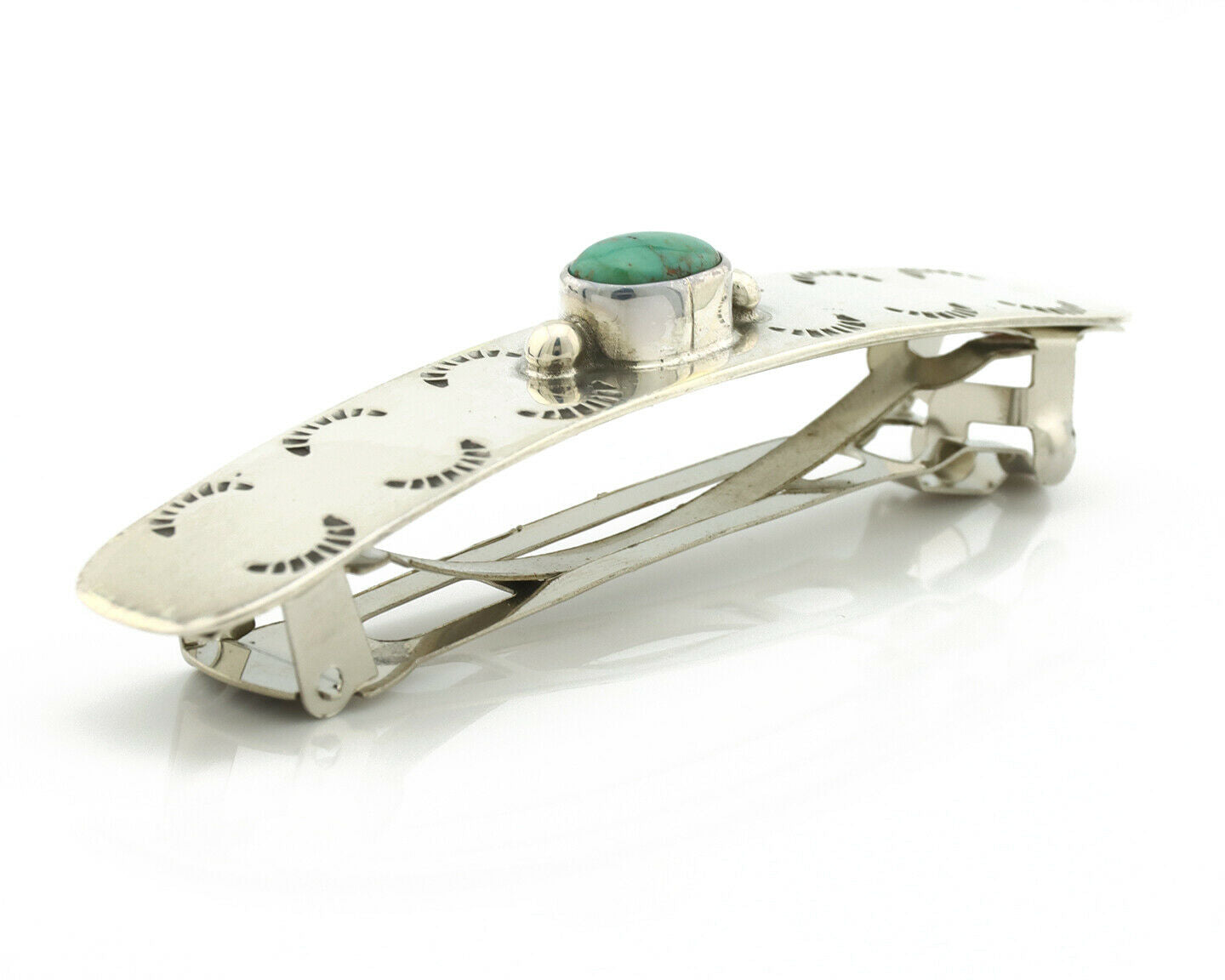 Navajo Hair Clip .925 Silver Turquoise Mountain Native American Barrette C.80's