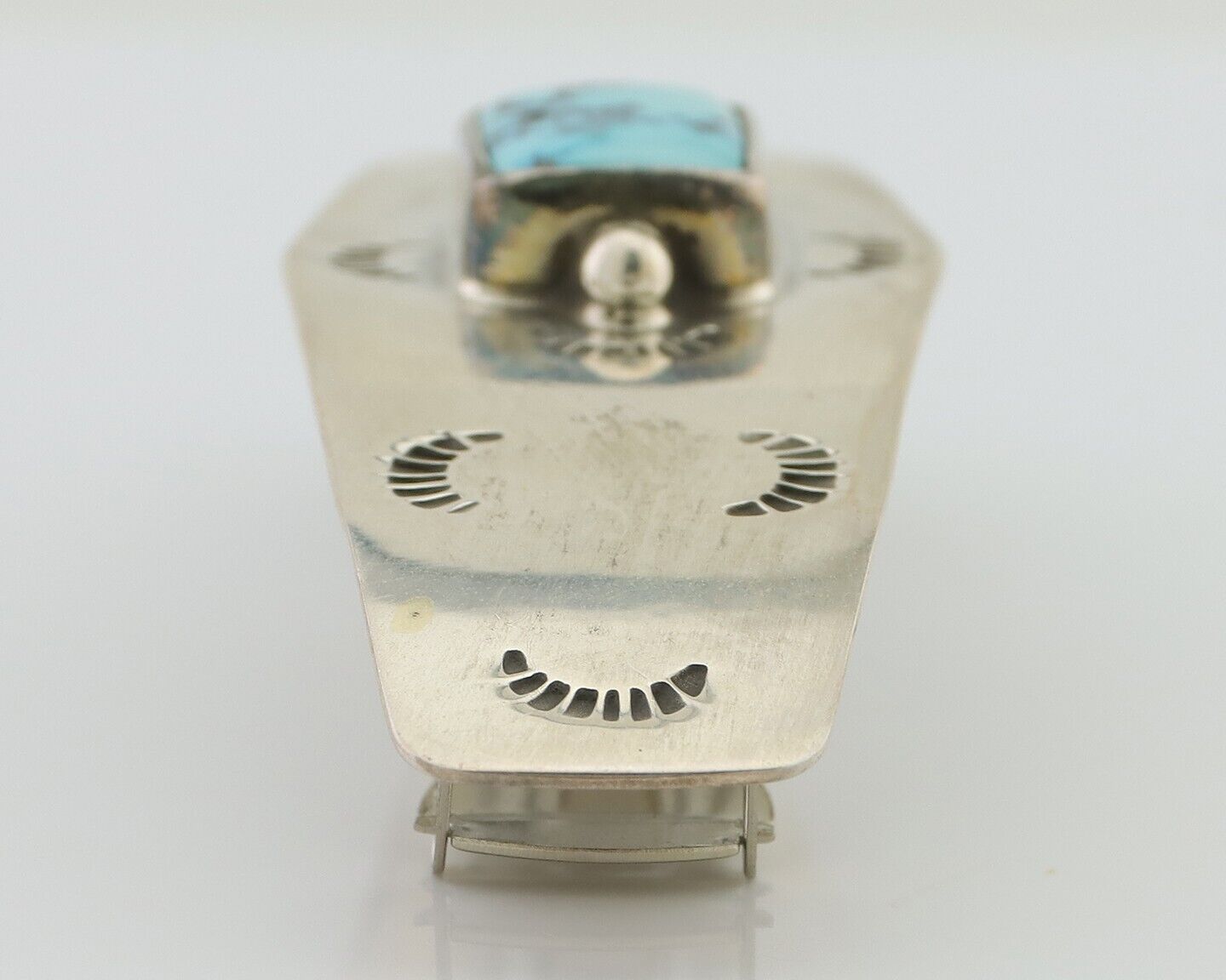 Navajo Hair Clip Barrette 925 Silver Morenci Turquoise Native Artist C.80's