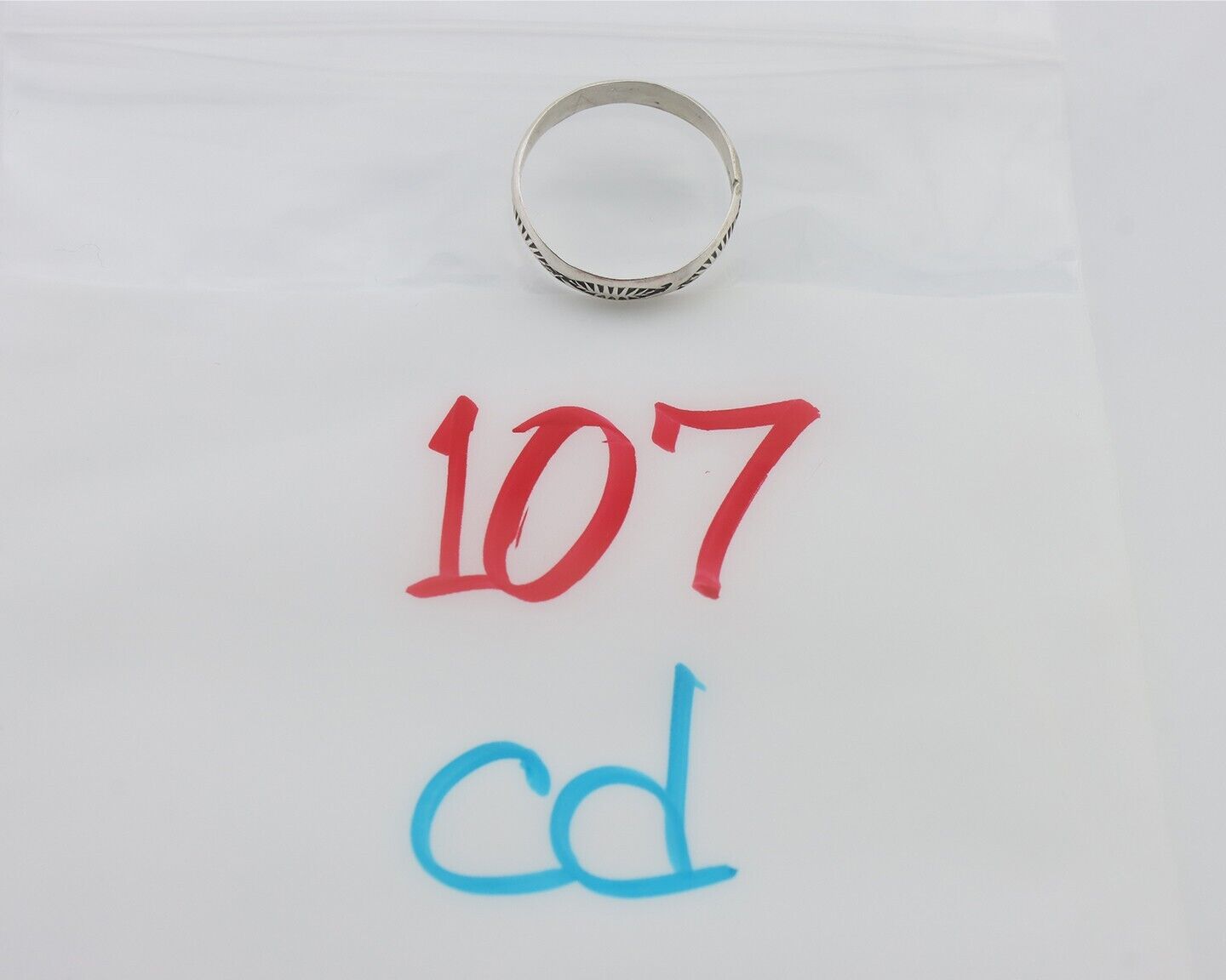 Navajo Hand Stamped Band 925 Silver 5.0 mm Signed Larry Chavez Size 9.75 C.80's