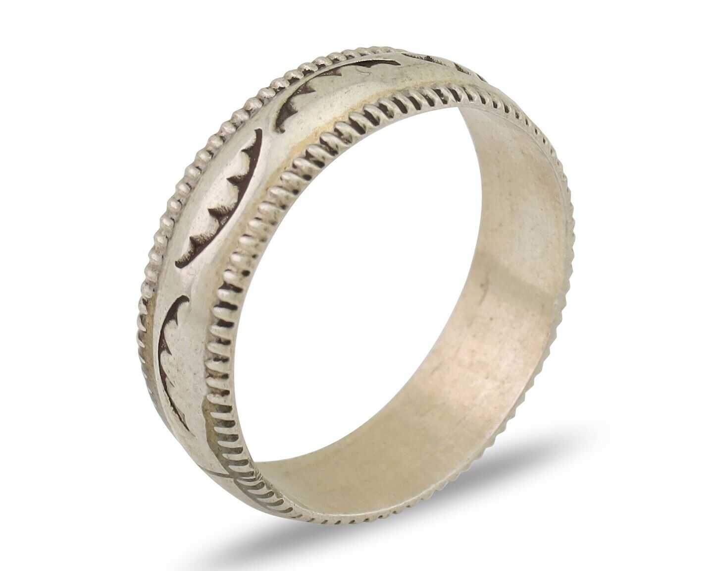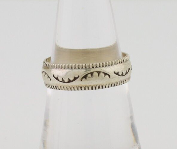 Navajo Hand Stamped Band 925 Silver 6.0 mm Native Artist Size 7.5 C.80's