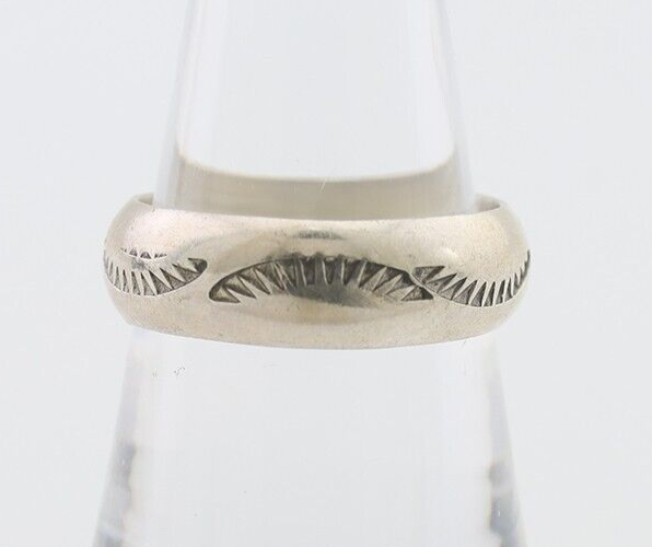 Navajo Hand Stamped Band 925 Silver 6.0 mm Signed Larry Chavez Size 7.5 C.80's