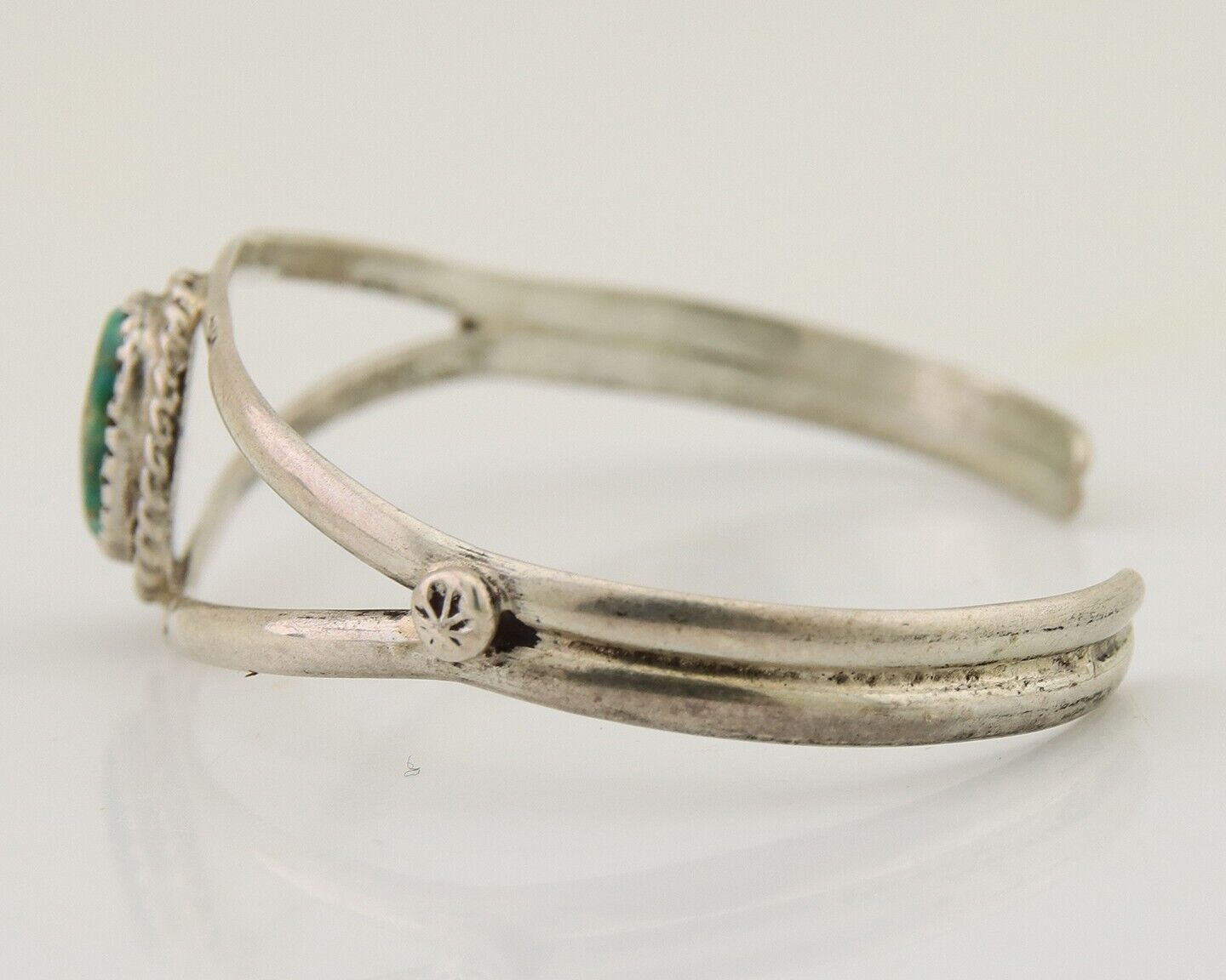 Navajo Hand Stamped Cuff Bracelet Turquoise 925 Silver Native American Artist