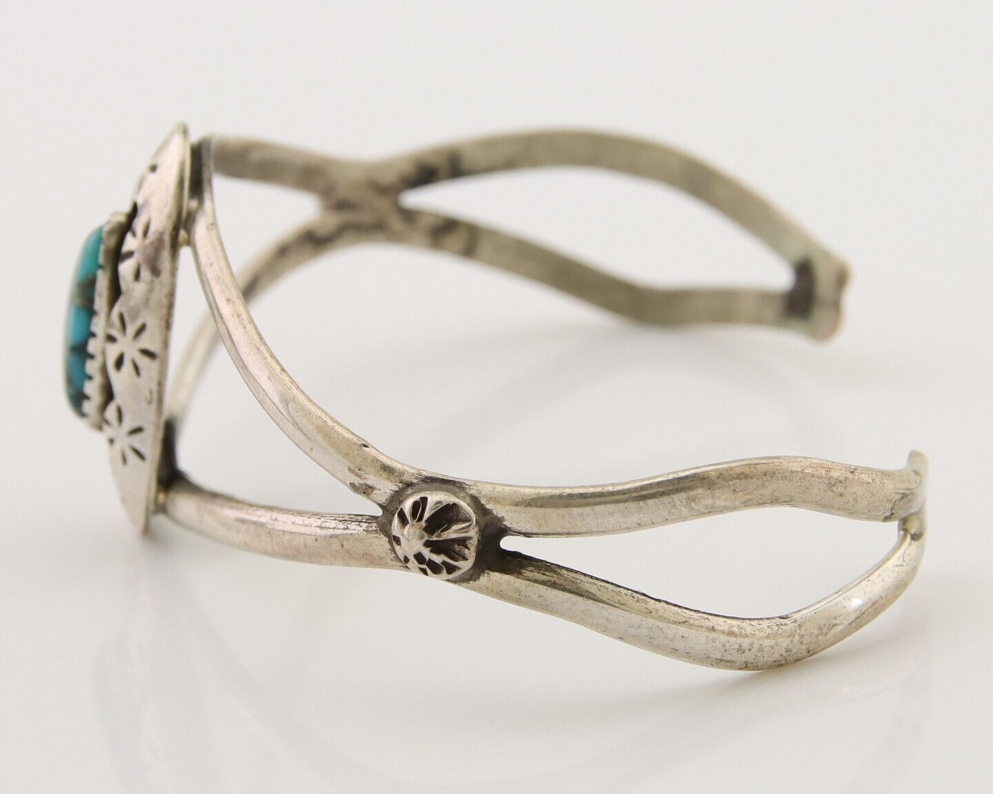Navajo Hand Stamped Cuff Bracelet Turquoise 925 Silver Native American Artist