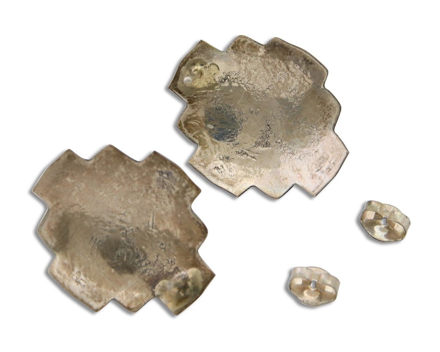 Navajo Hand Stamped Earrings 925 Silver Turquoise Native American Artist C.80's