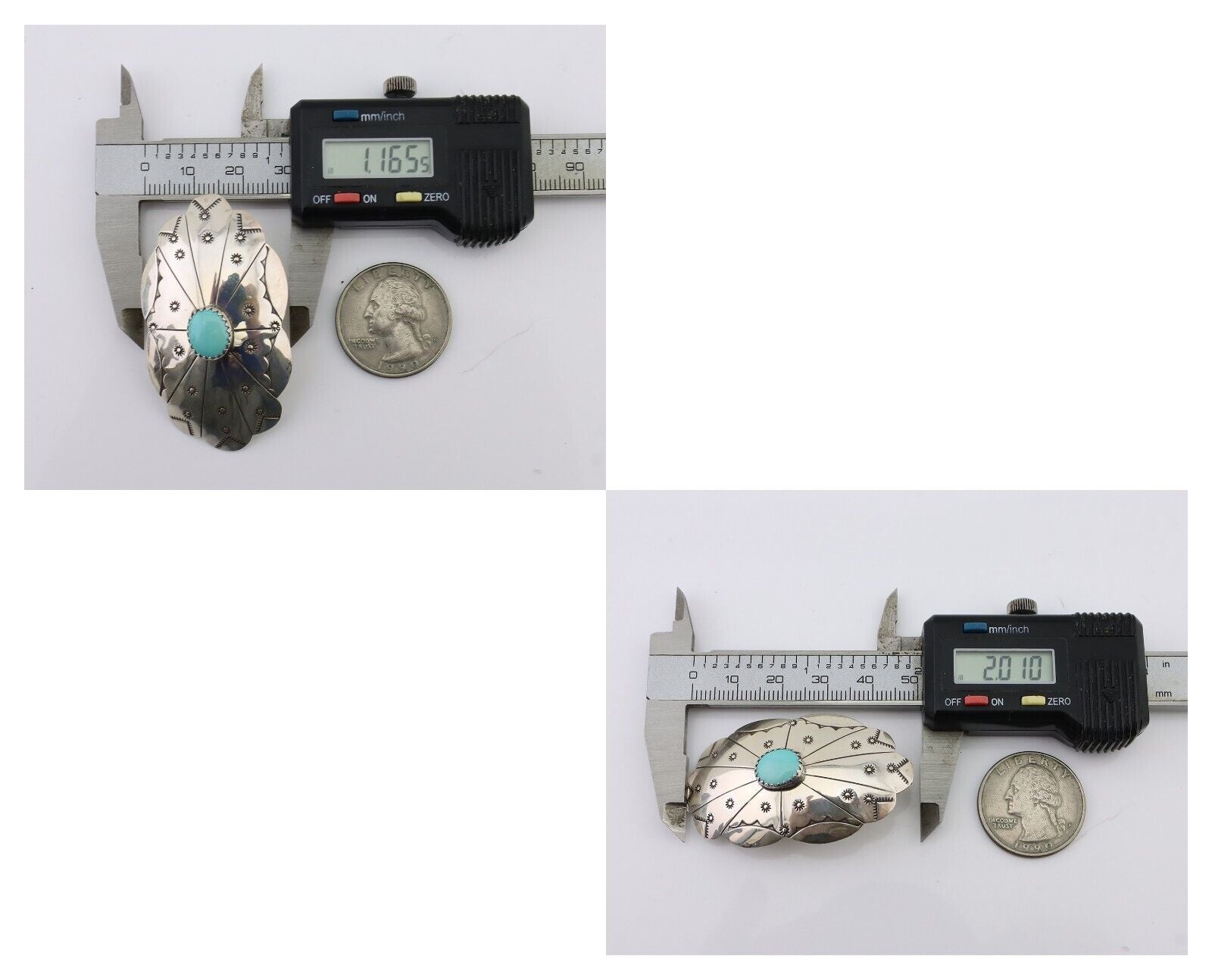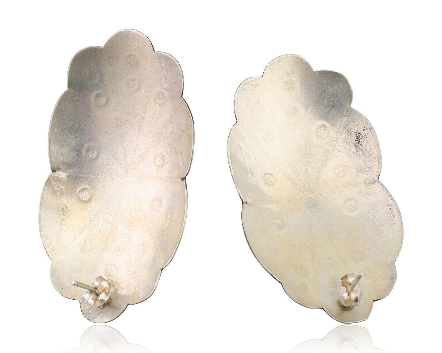 Navajo Hand Stamped Shield Earrings 925 Silver Turquoise Native Artist C.80's