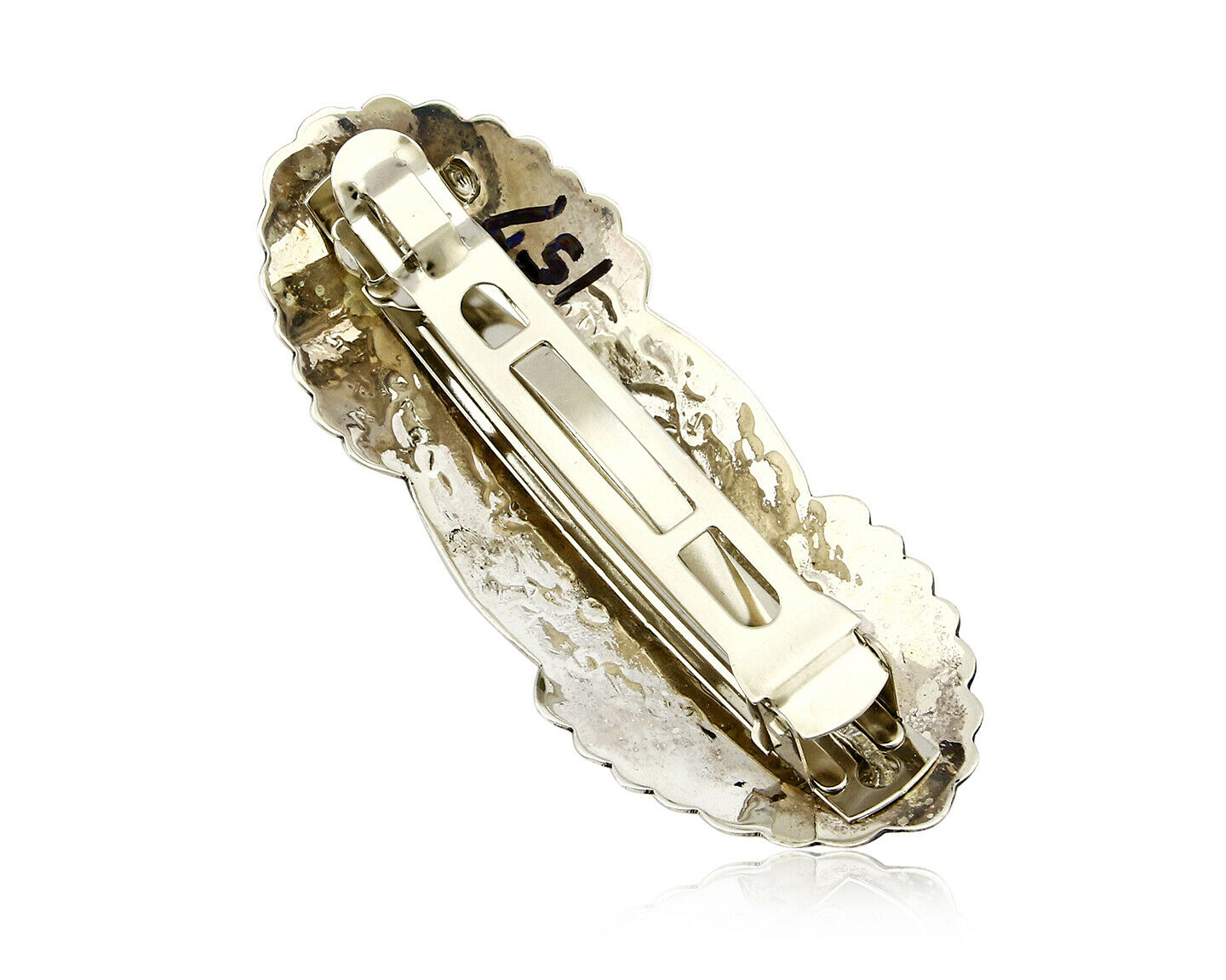 Navajo Handmade .925 SOLID SILVER Hand Stamped 36mm Wide Barrette Hair Clip