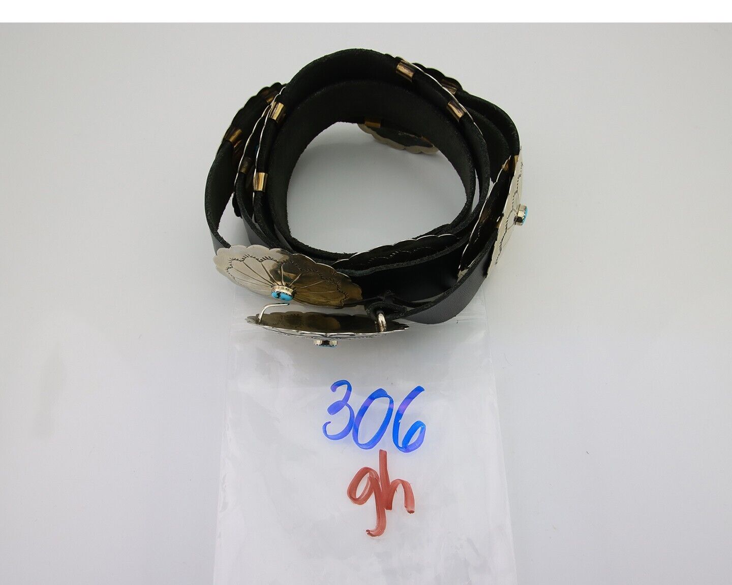 Navajo Handmade Concho Belt Turquoise 925 Silver Signed RS Arrow C.80's