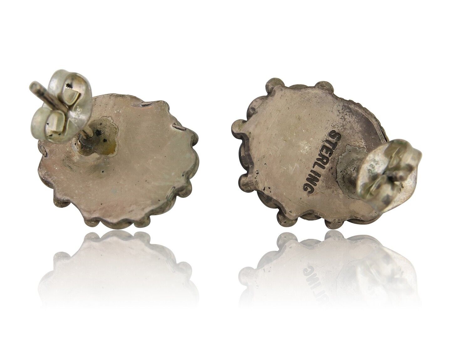 Navajo Handmade Earrings 925 Silver Natural Turquoise Native American Artist 80s