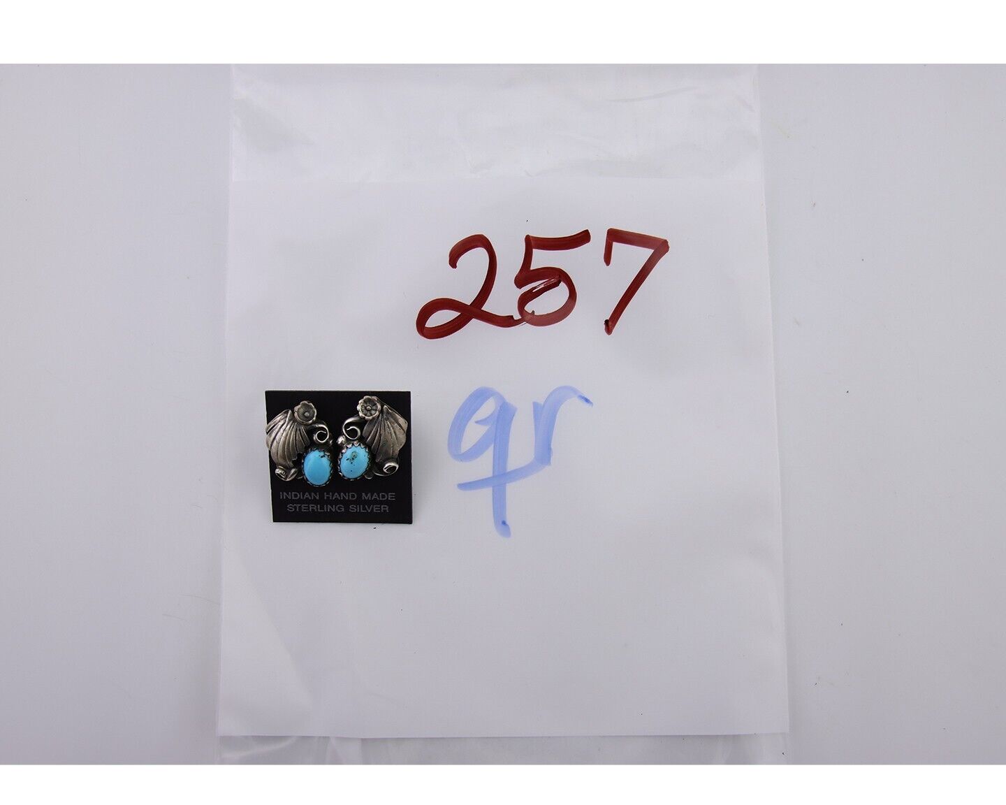 Navajo Handmade Earrings 925 Silver Natural Turquoise Native American Artist 80s