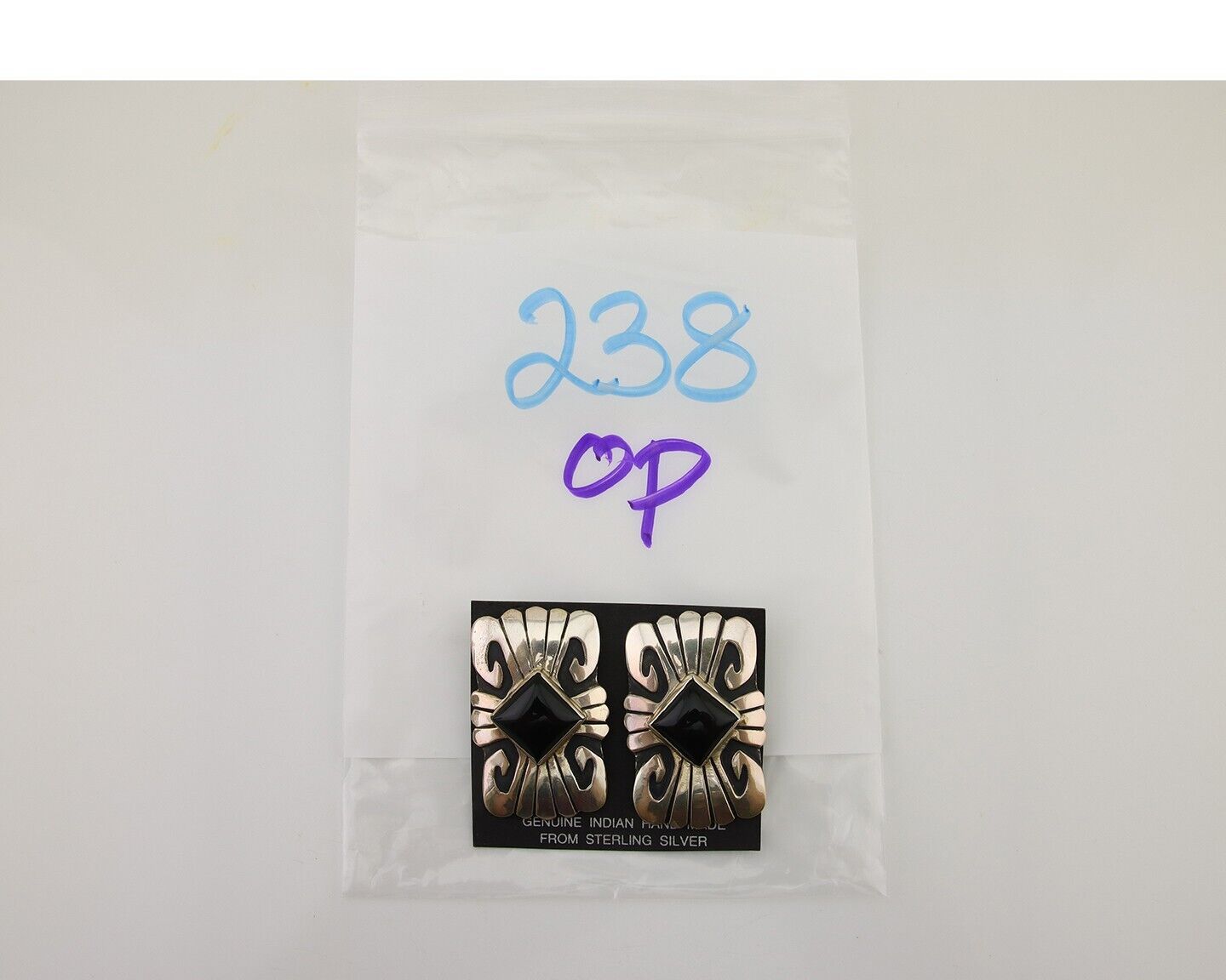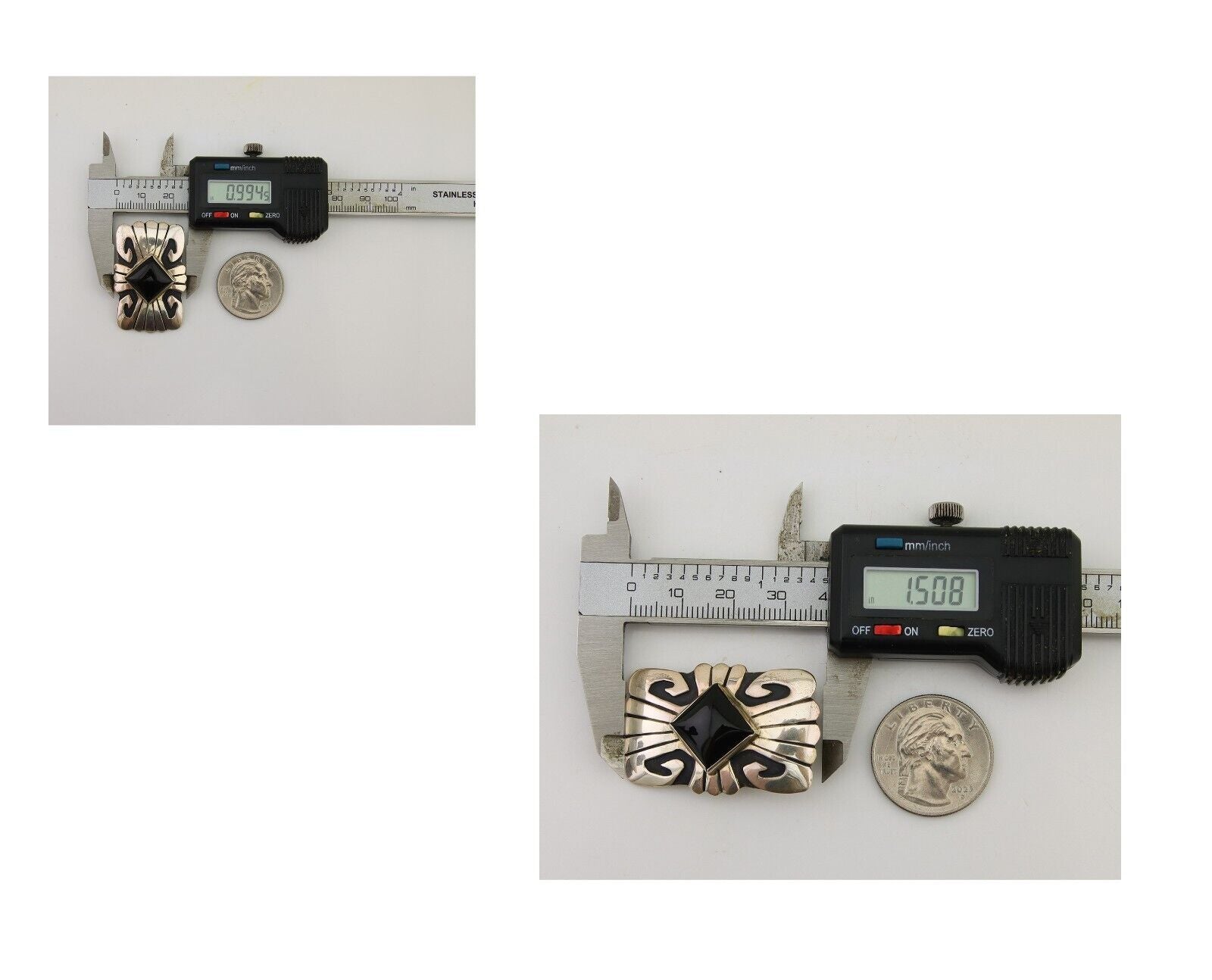 Navajo Handmade Earrings 925 Silver Onyx Artist Signed Thomas Singer C.70's