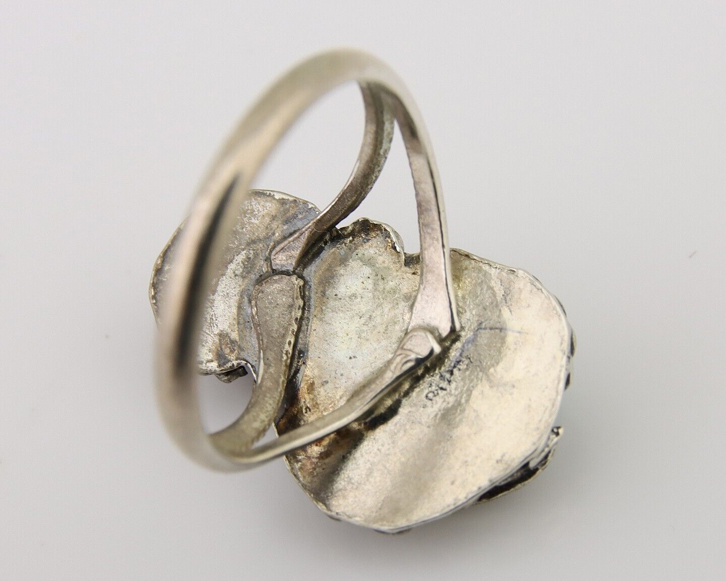 Navajo Handmade Ring 925 Silver Coral & Turquoise Native Artist C.80's