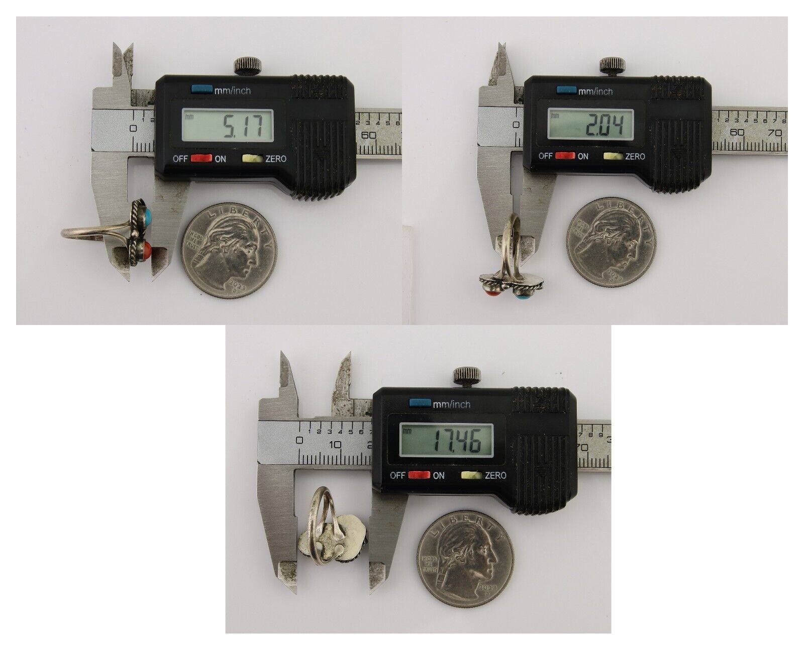 Navajo Handmade Ring 925 Silver Coral & Turquoise Native Artist C.80's