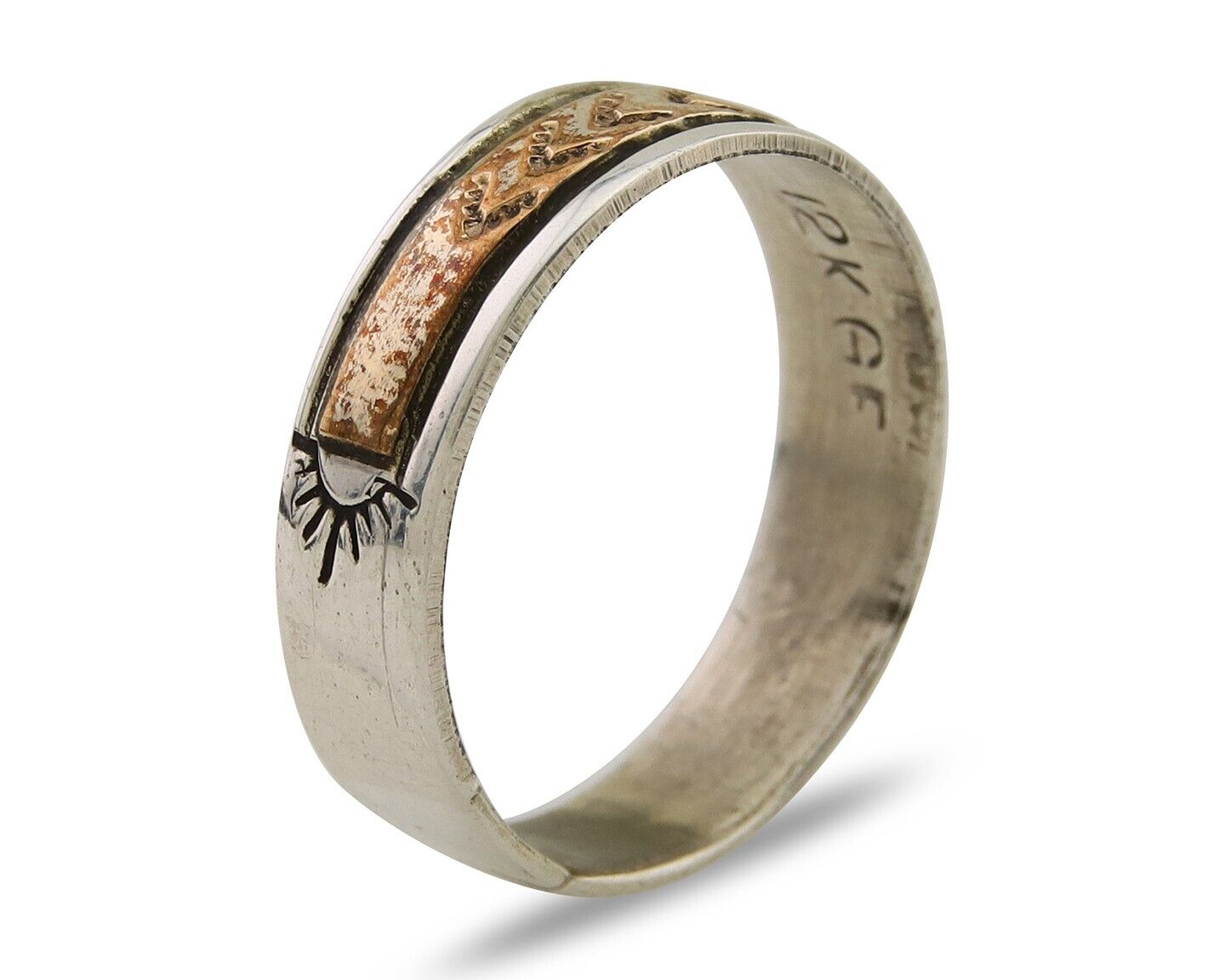 Navajo Handmade Ring 925 Silver & Gold Artist Signed E C.80's