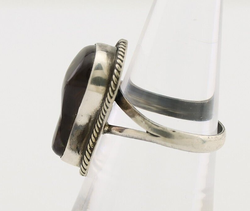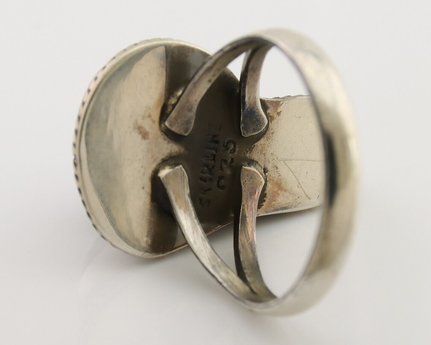 Navajo Handmade Ring 925 Silver Natural Fire Opal Native Artist Size 6.5 C.80's