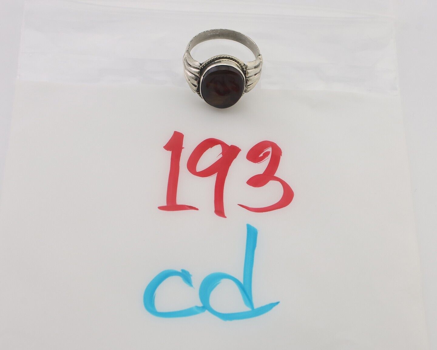 Navajo Handmade Ring 925 Silver Natural Fire Opal Native Artist Size 7.25 C.80's