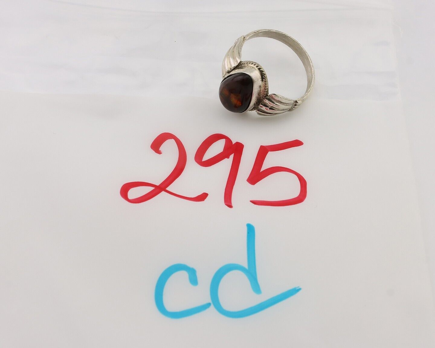 Navajo Handmade Ring 925 Silver Natural Fire Opal Native Artist Size 8.0 C.80's