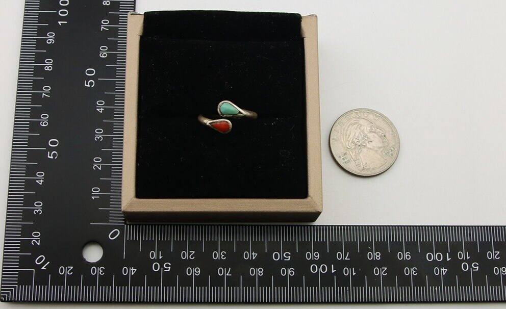Navajo Handmade Ring 925 Silver Turquoise & Coral Native Artist C.80's