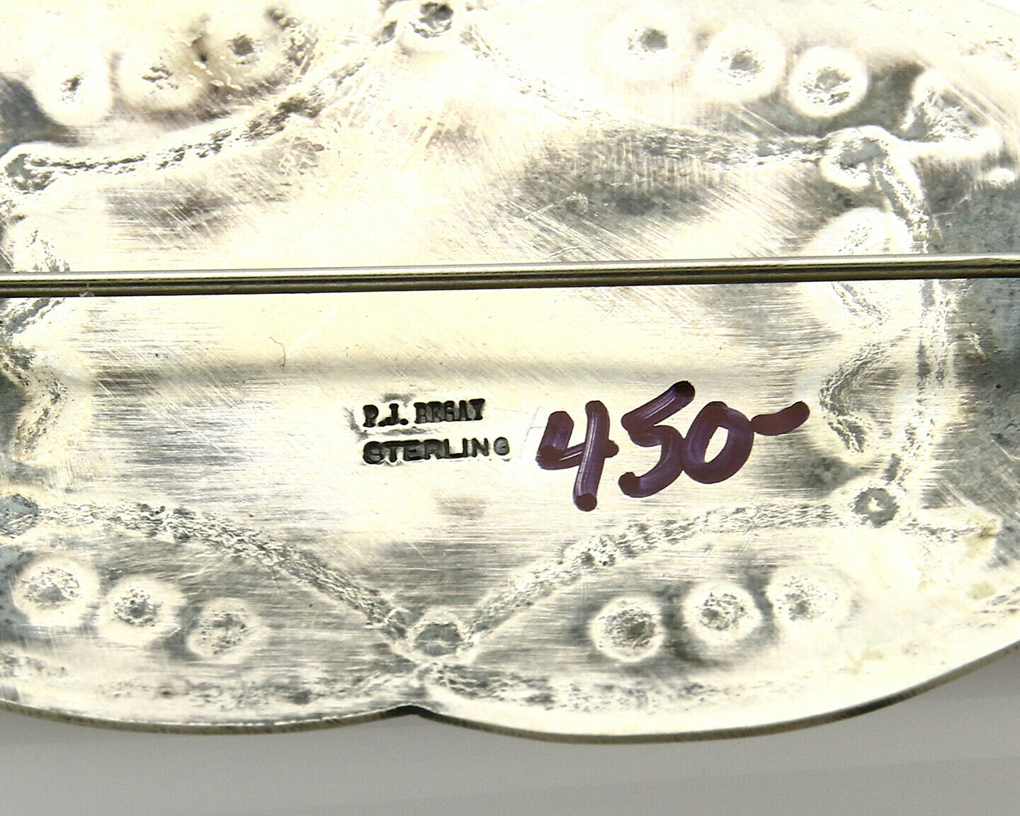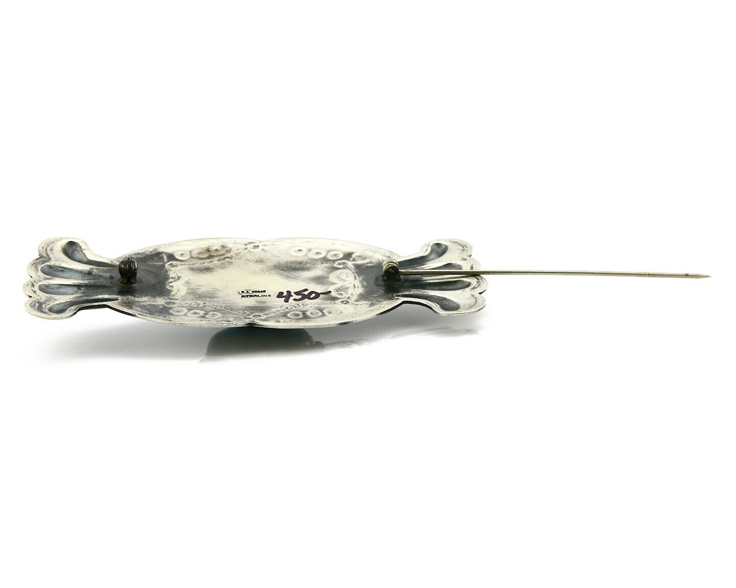 Navajo Handmade Turquoise Pin .925 Sterling Silver Signed Artist PJ Begay C.80's