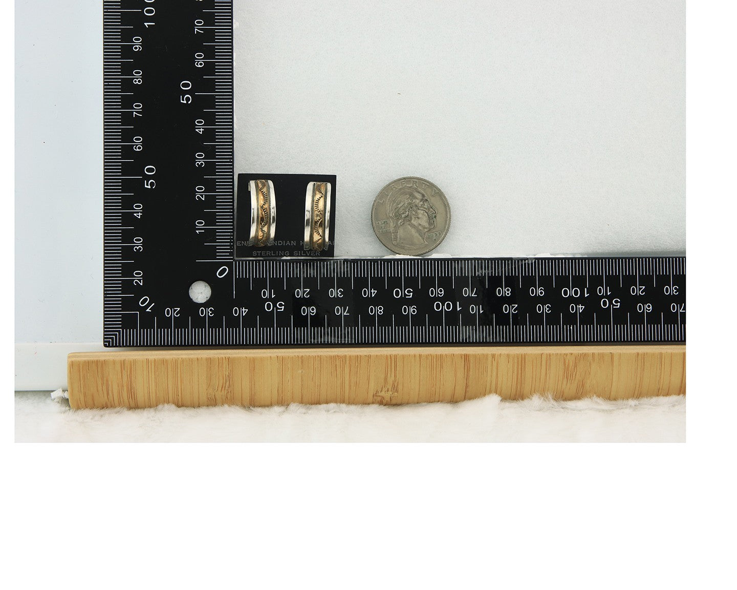 Navajo Hoop Earrings Sterling Silver & Gold Vintage Handmade Signed E