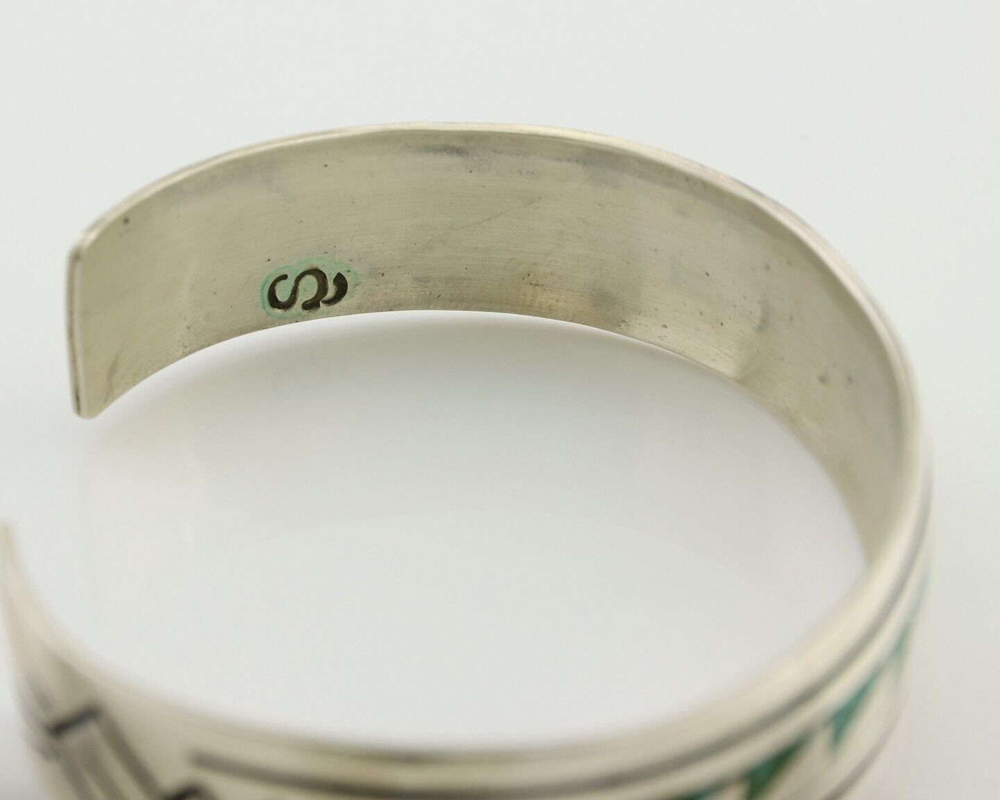 Navajo Inlay Bracelet 925 Silver Turquoise & Coral Signed Stanely Bain C.80's