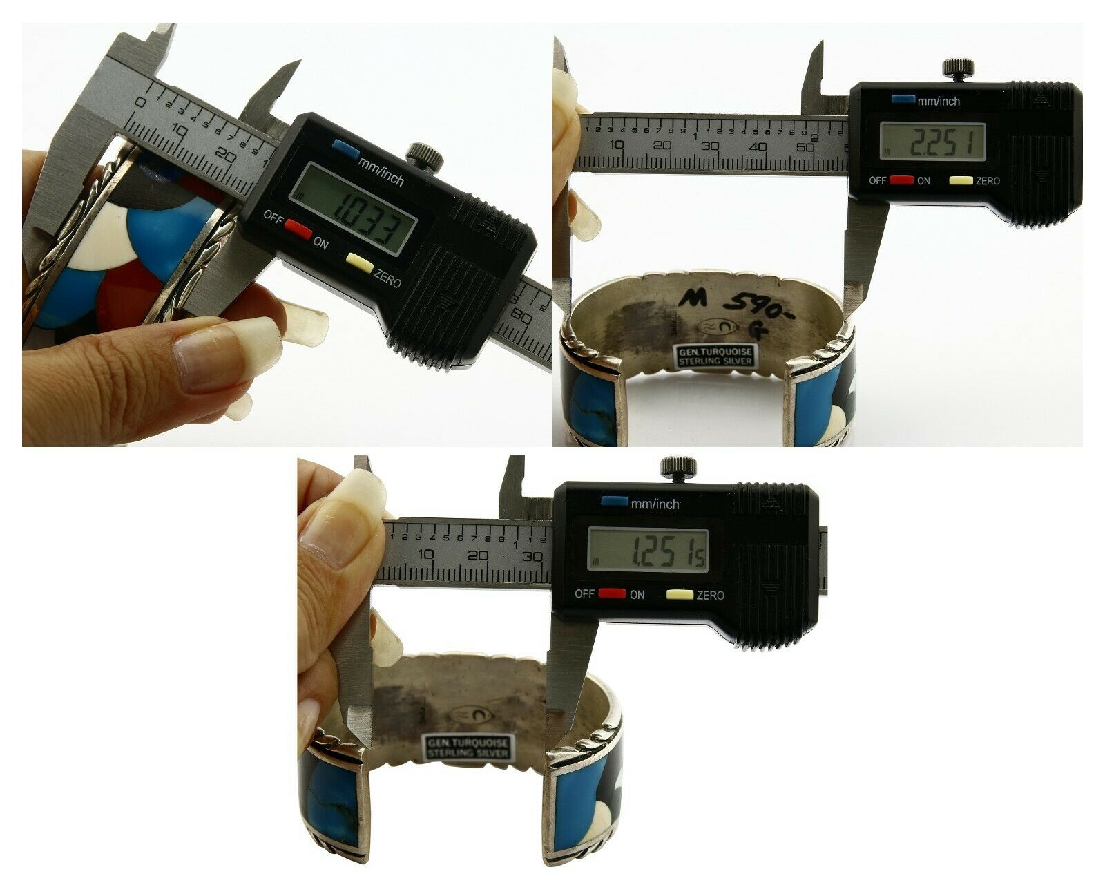 Navajo Jerry Cowboy Signed .925 Silver Gemstone Handmade Unique Cuff