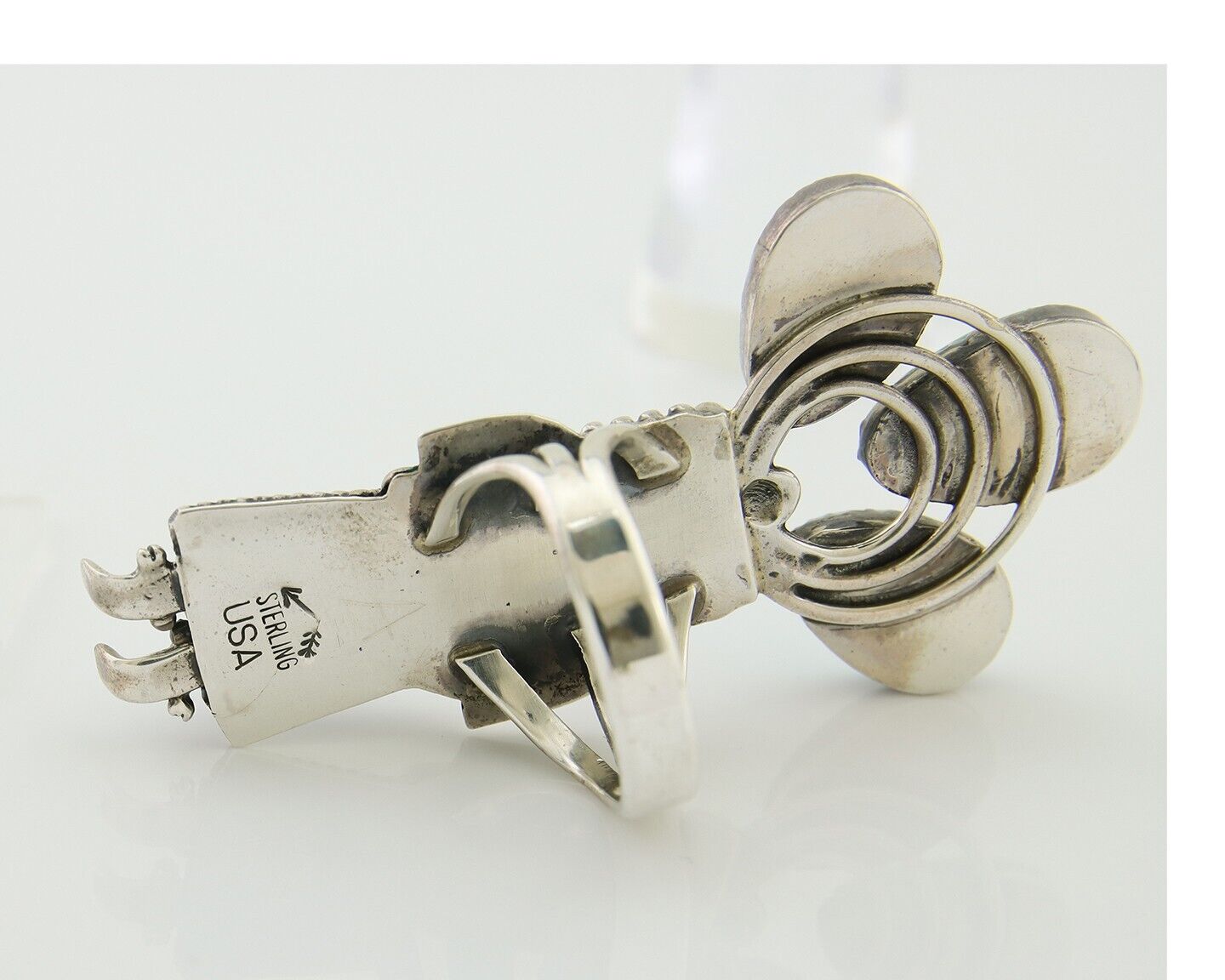 Navajo Kachina Ring 925 Silver Gem Turquoise Signed Broken Arrow C.80's