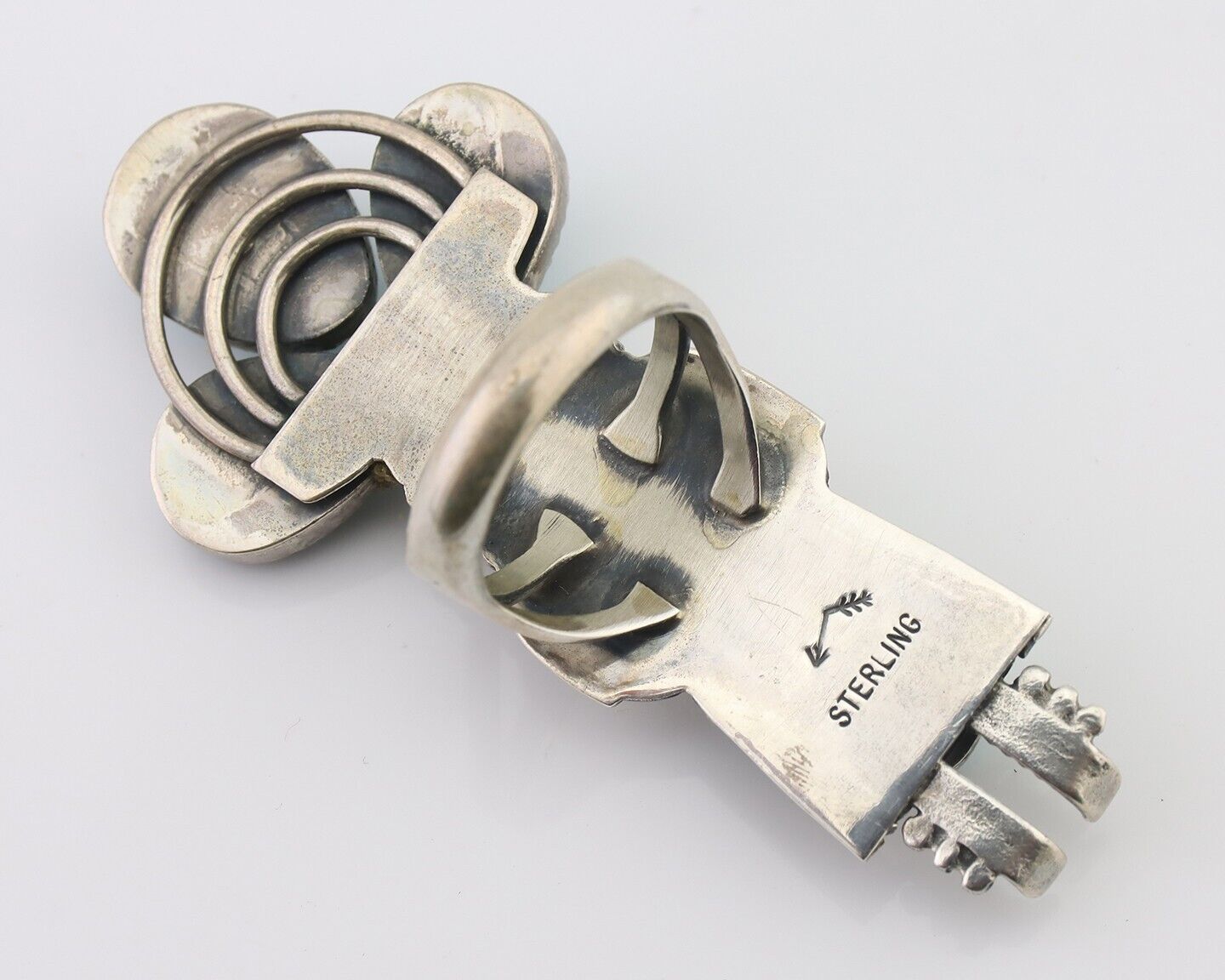 Navajo Kachina Ring 925 Silver Turquoise Artist Signed Broken Arrow C.80's