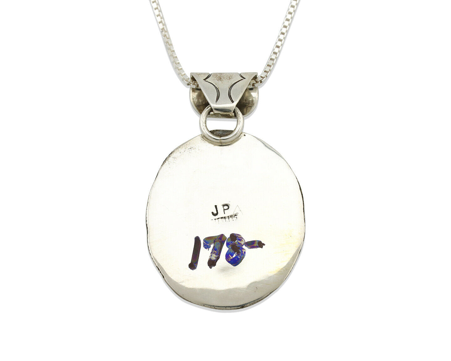 Navajo Kingman Turquoise Pendant .925 Silver Artist Signed JP C.80's