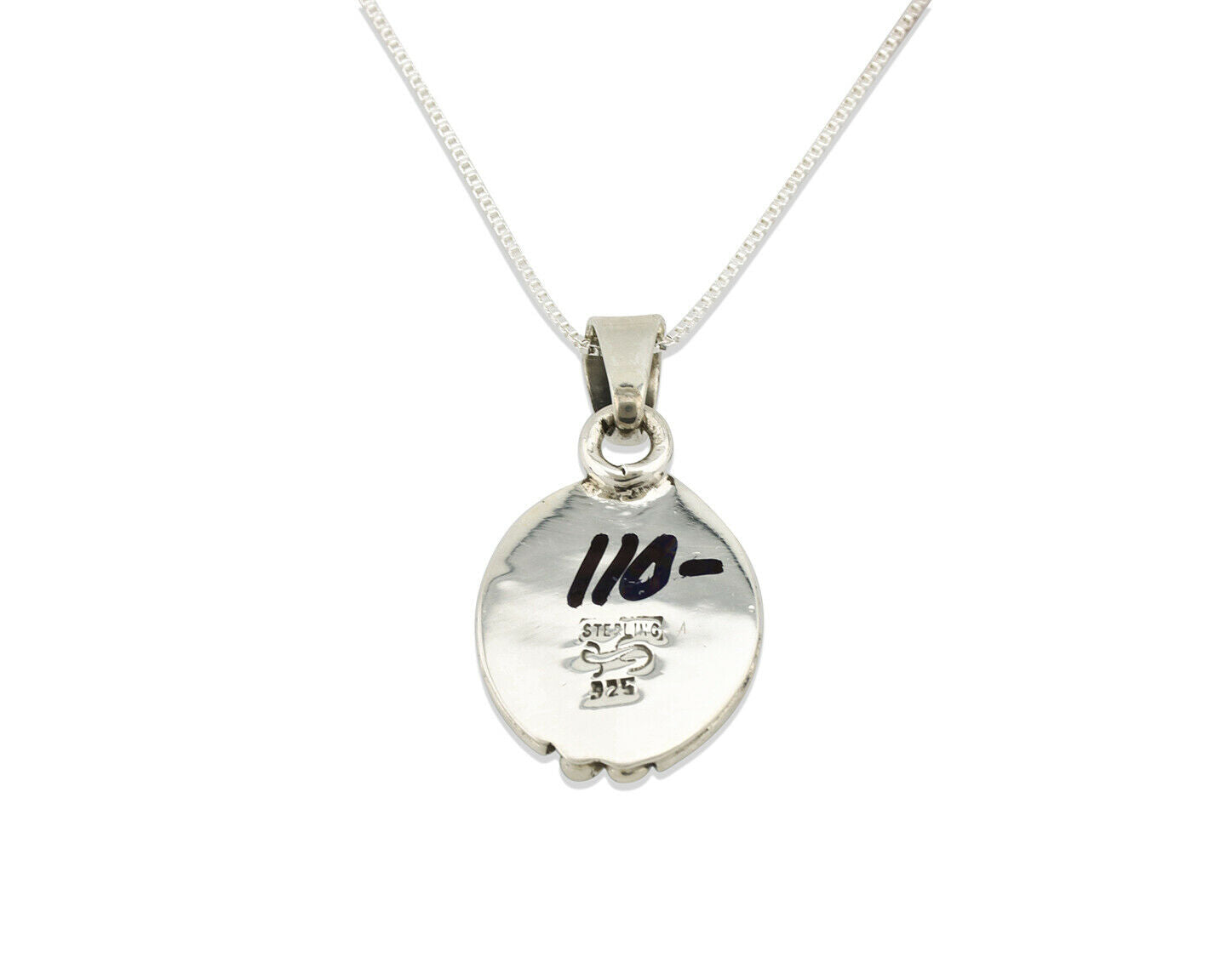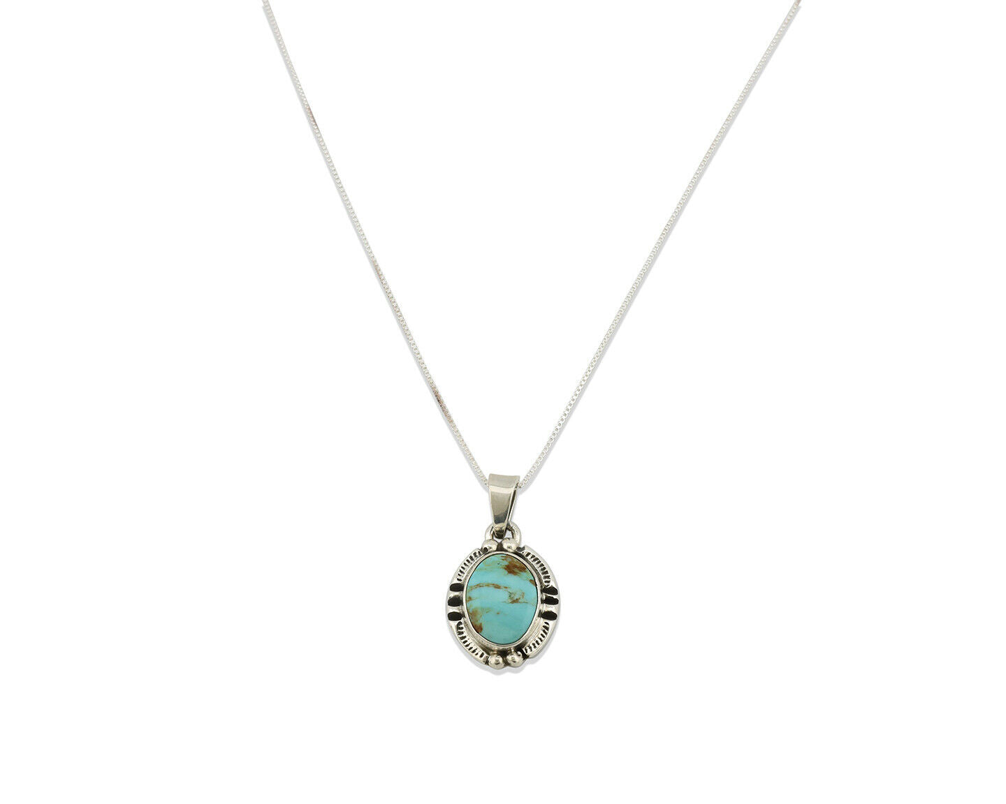 Navajo Kingman Turquoise Pendant .925 Silver Hand Stamped Signed Gecko C.80's