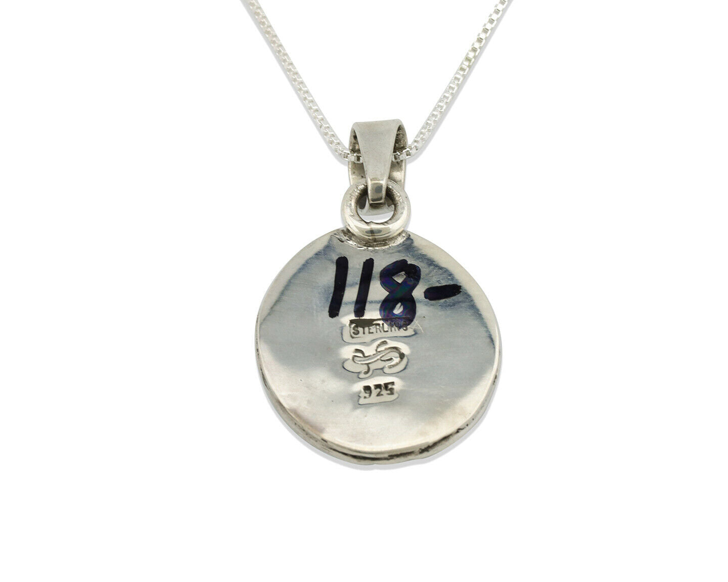 Navajo Kingman Turquoise Pendant .925 Silver Hand Stamped Signed Gecko C.80's