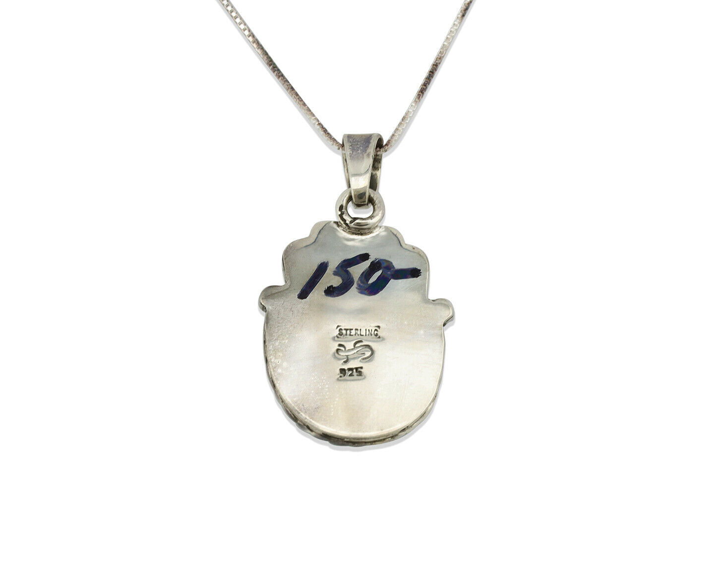 Navajo Kingman Turquoise Pendant .925 Silver Hand Stamped Signed Gecko C.80's