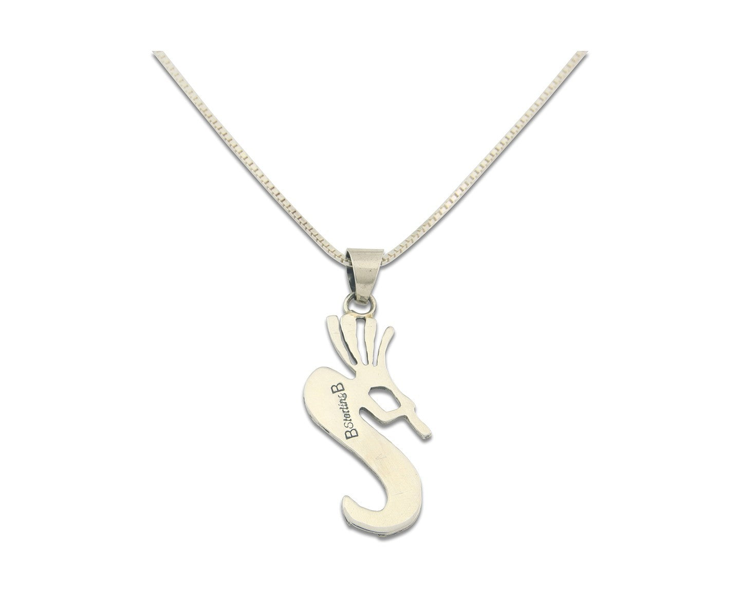 Navajo Kokopelli Necklace Sterling Silver Opal Vintage Signed BB