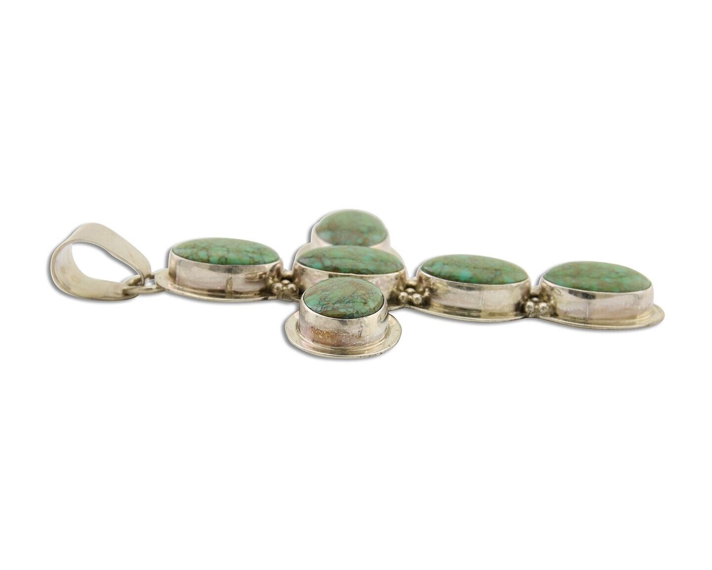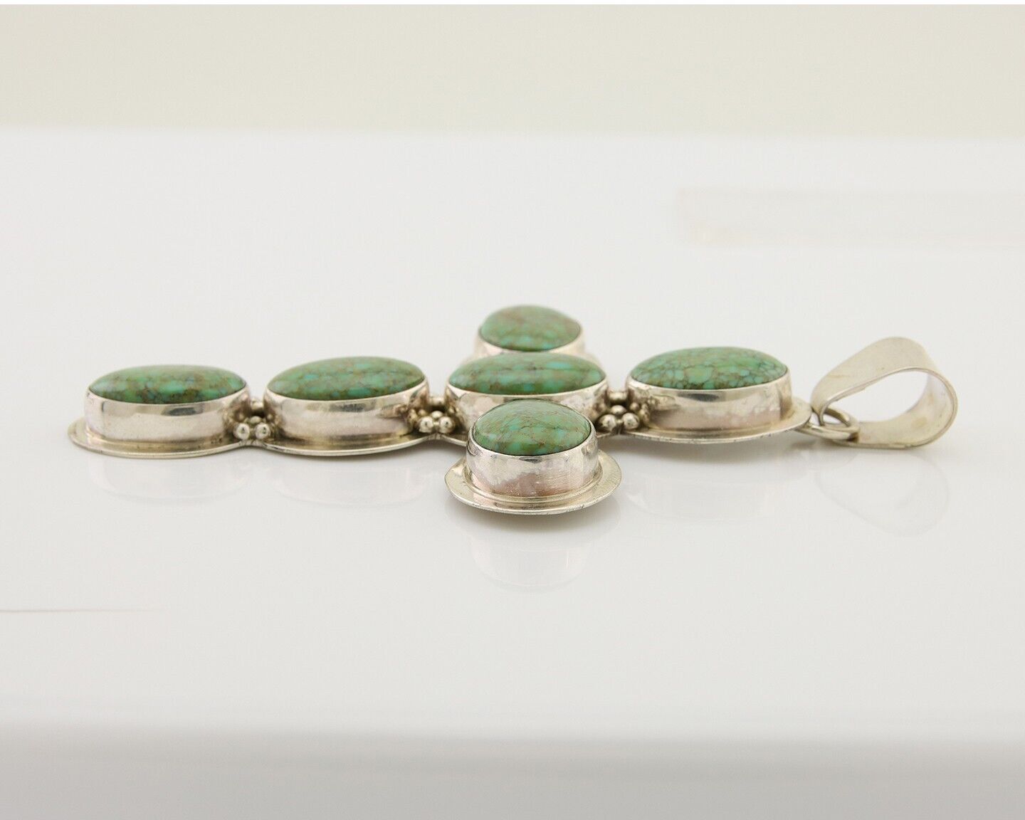Navajo Large Pendant 925 Silver Natural Turquoise Signed Melissa Yazzie C.80's