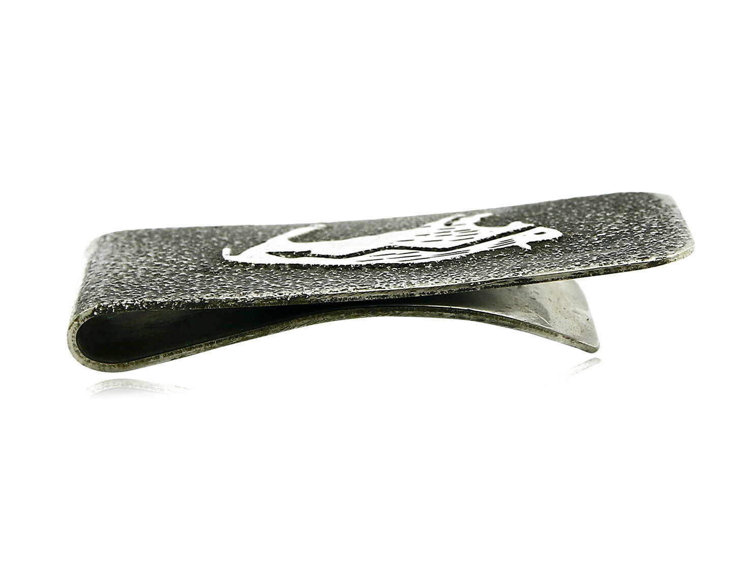 Navajo Money Clip .925 Silver & Nickle Hand Stamped Artist RB C.80's-90's