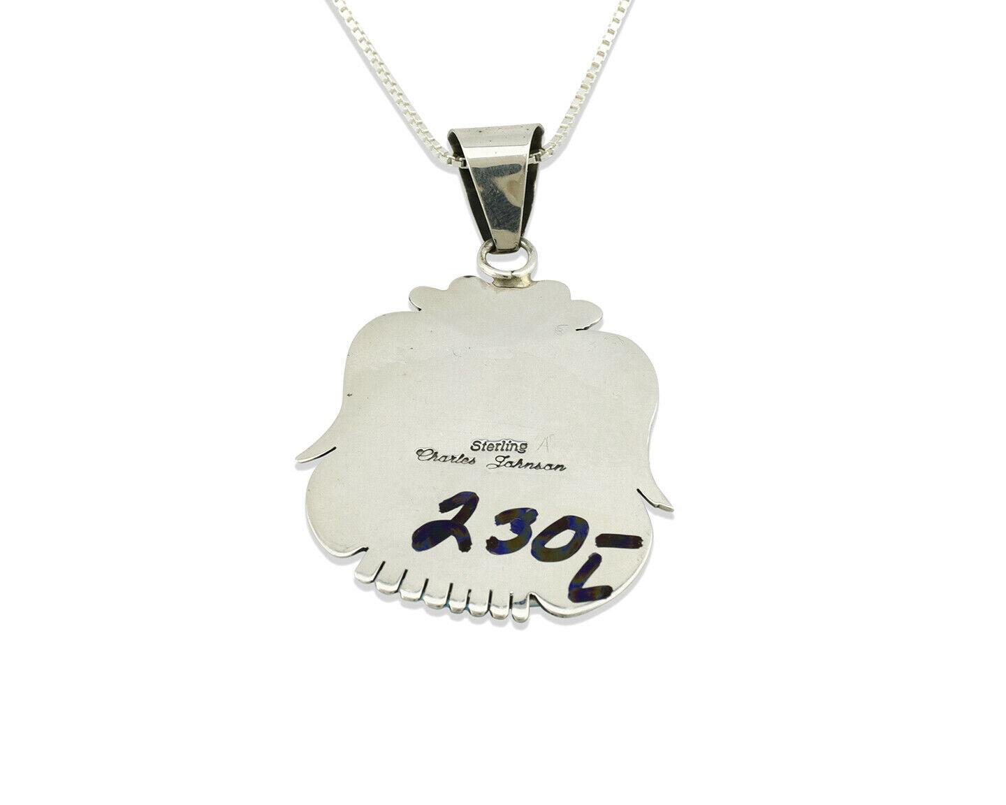 Navajo Necklace .925 Silver Blue Turquoise Signed Charles Johnson C.80's