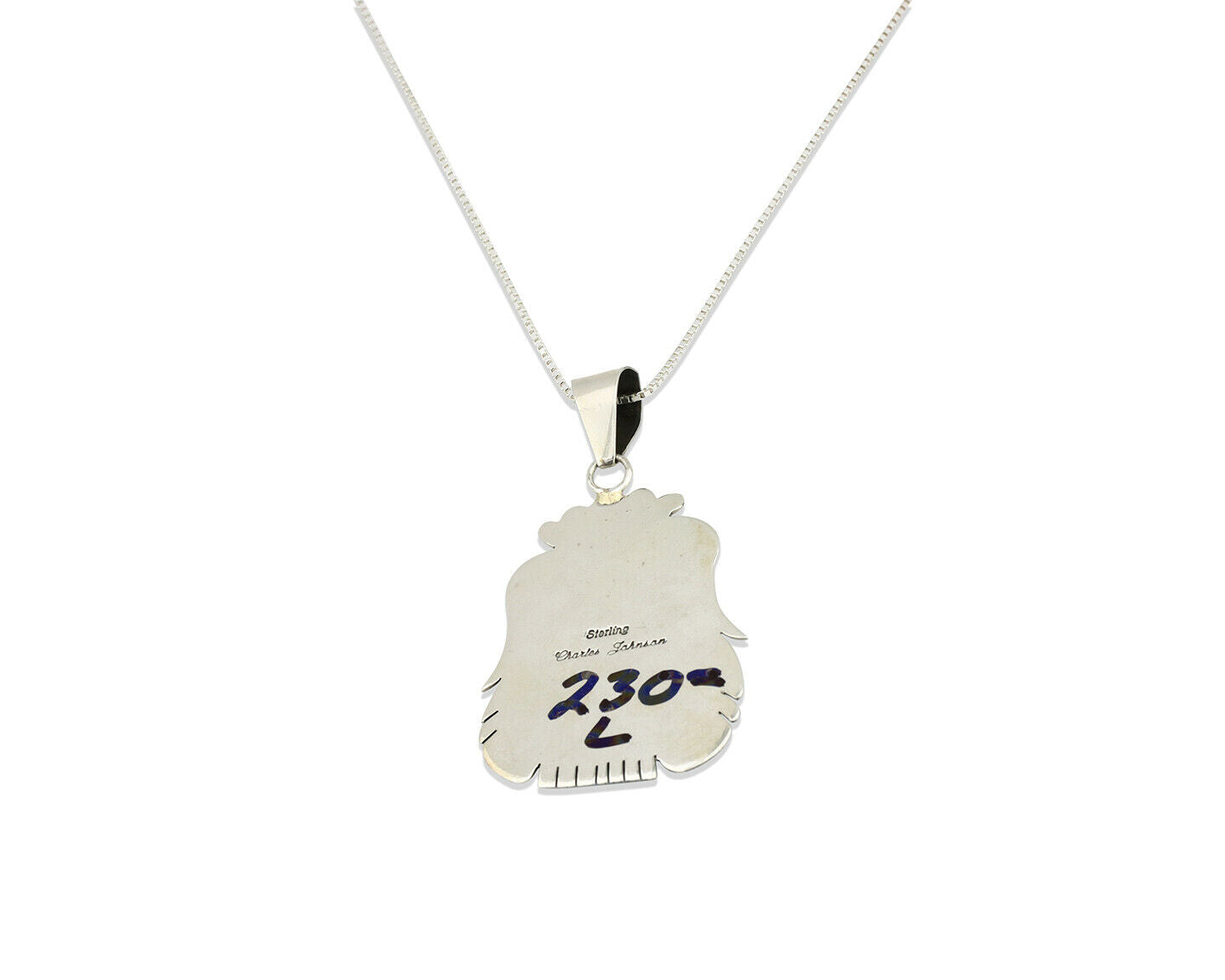 Navajo Necklace .925 Silver Blue Turquoise Signed Charles Johnson C.80's