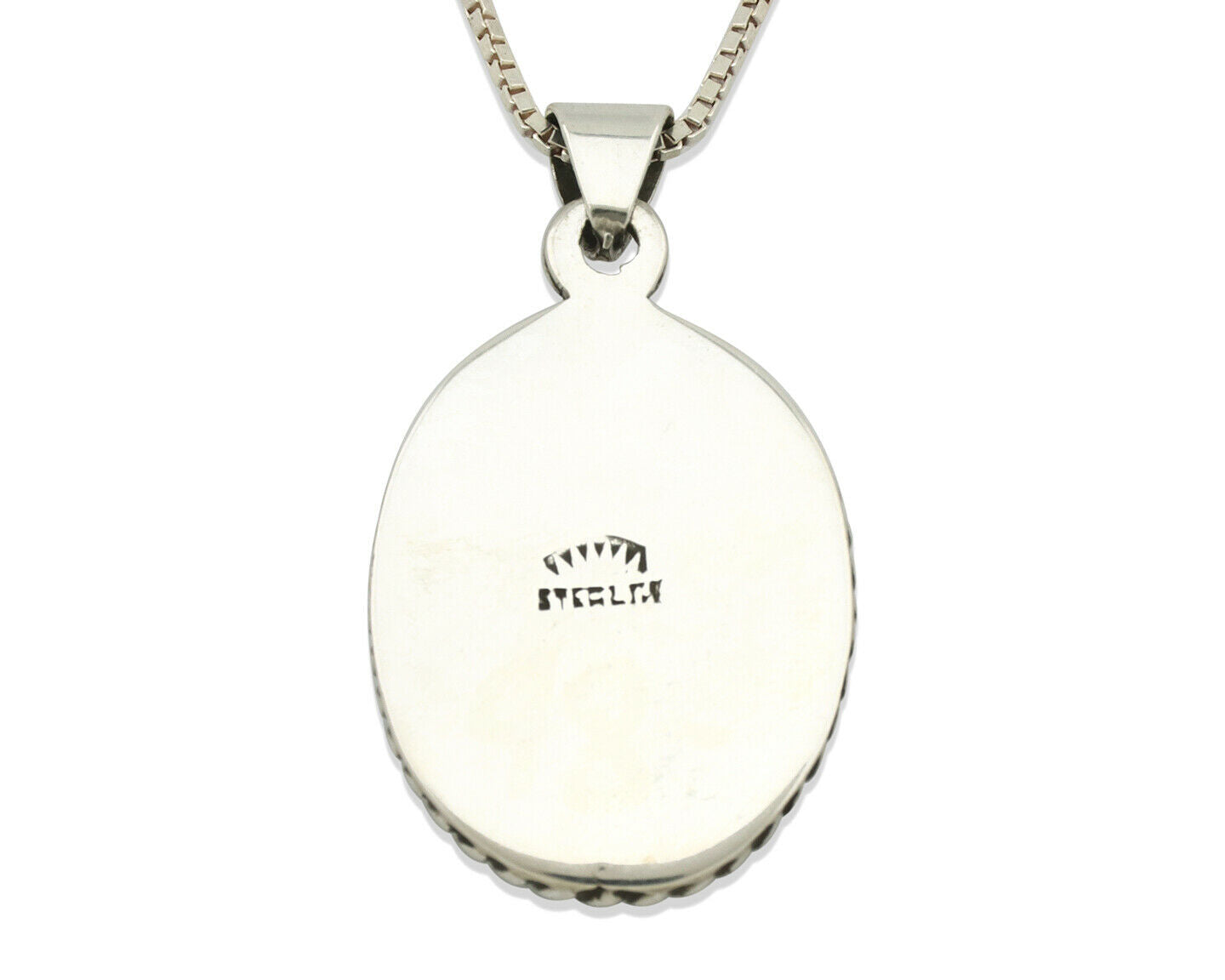 Navajo Necklace .925 Silver Crescent Valley Turquoise Signed Sunrise C.80's