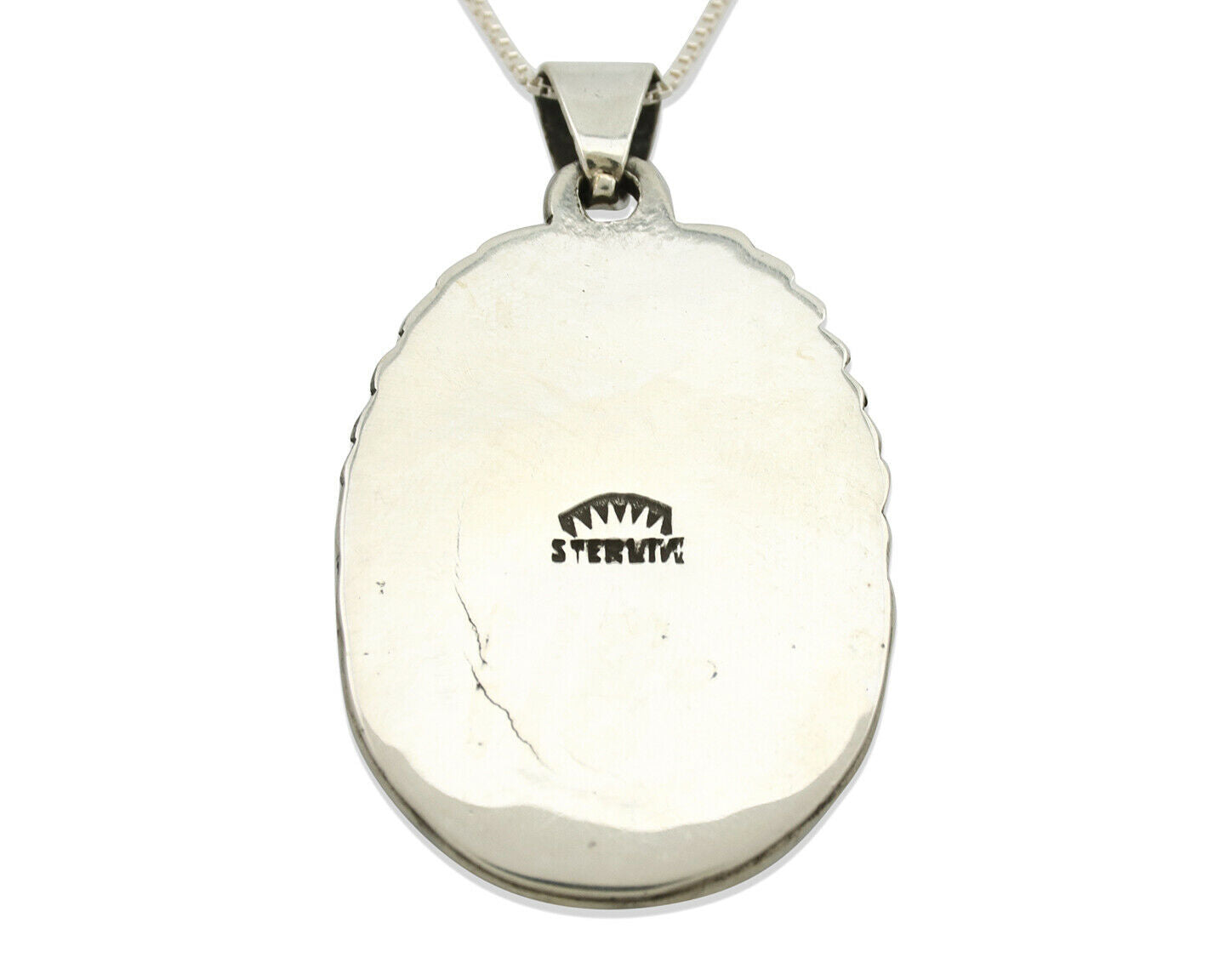Navajo Necklace .925 Silver Crescent Valley Turquoise Signed Sunrise C.80's
