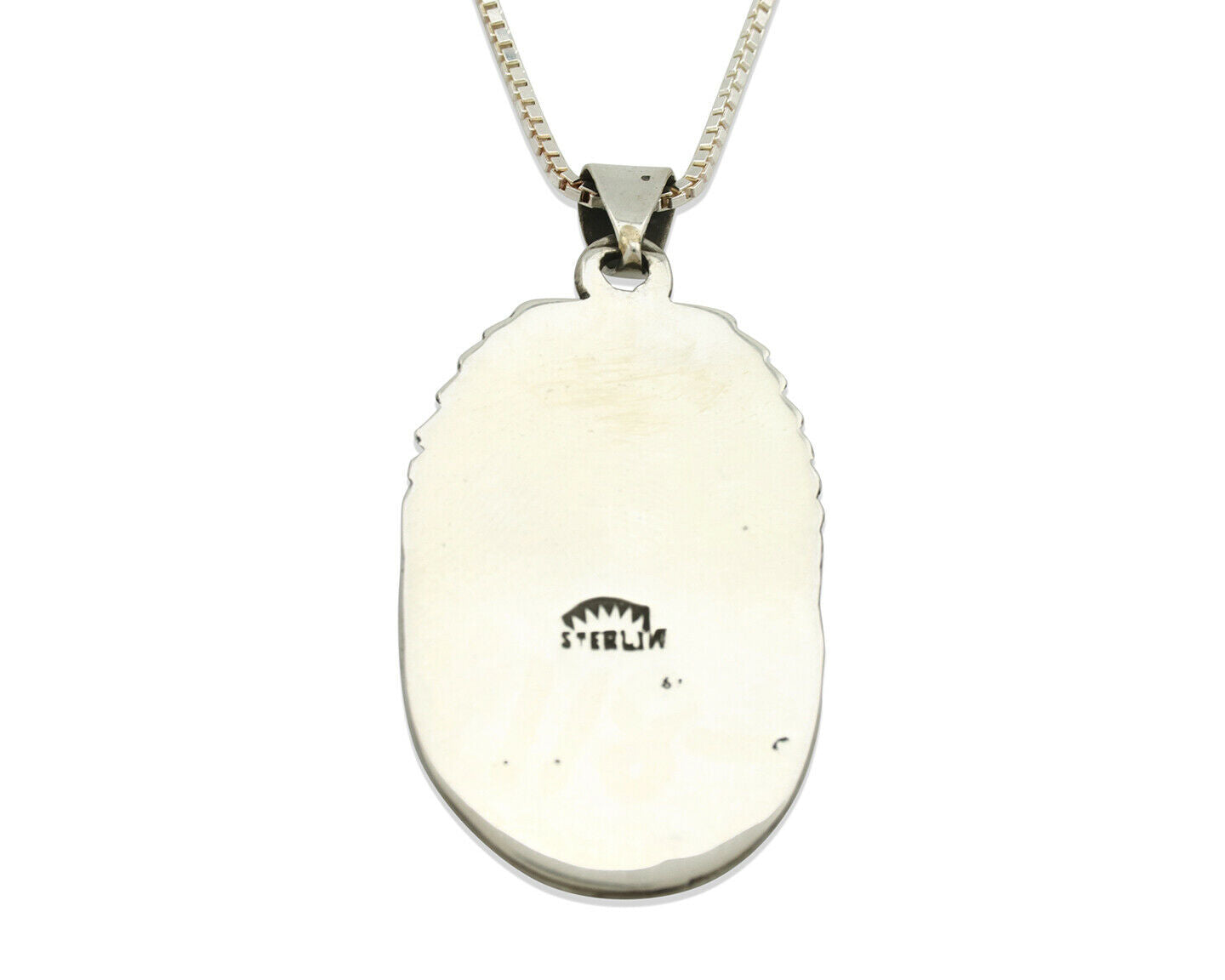 Navajo Necklace .925 Silver Crescent Valley Turquoise Signed Sunrise C.80's