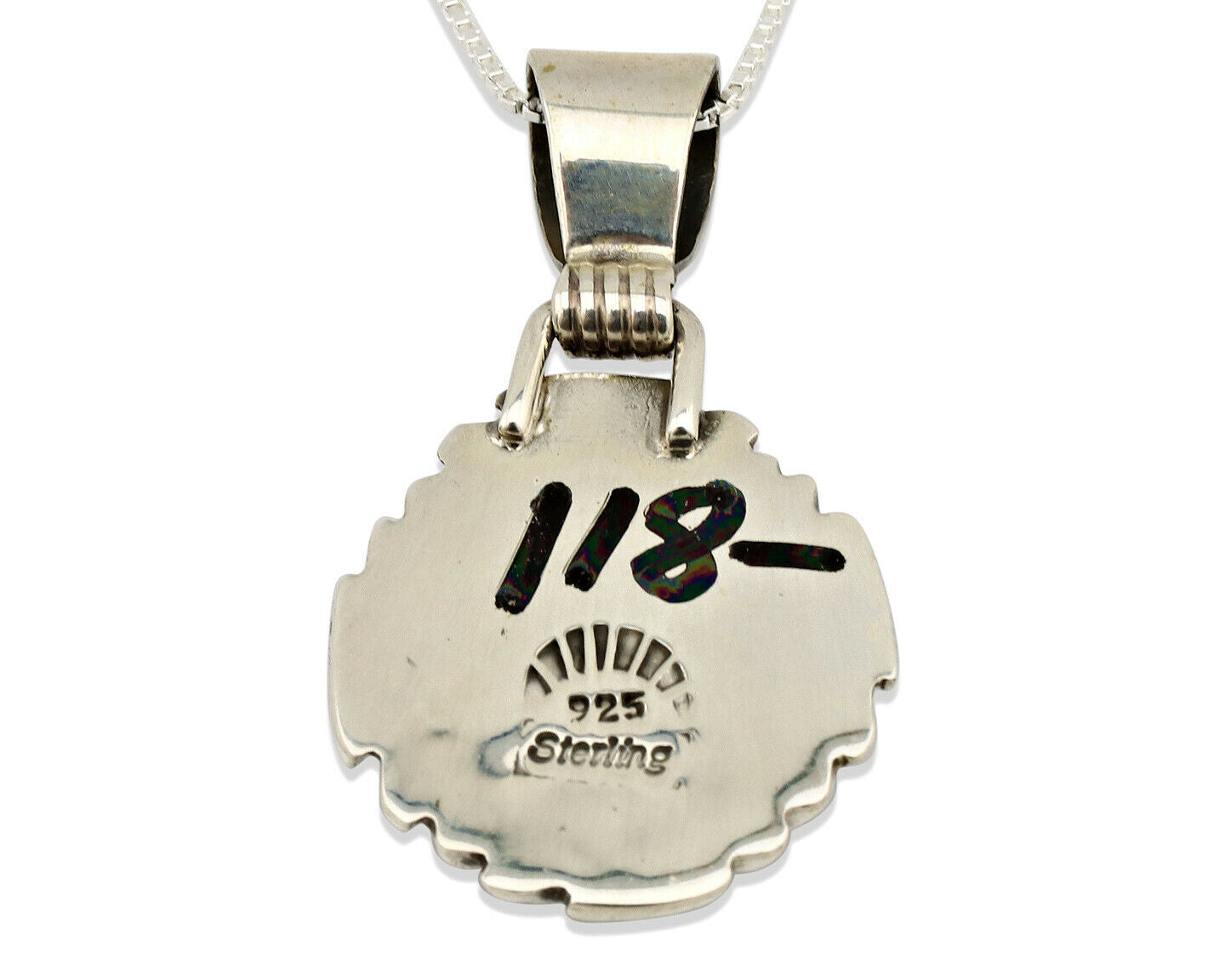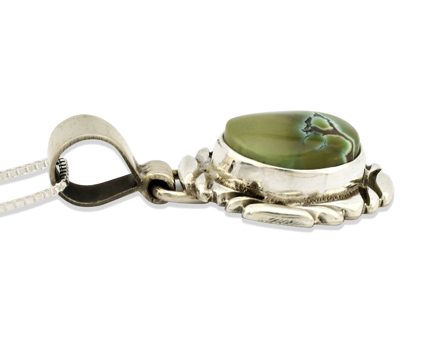 Navajo Necklace .925 Silver Damele Variscite Signed Sun C.1980's