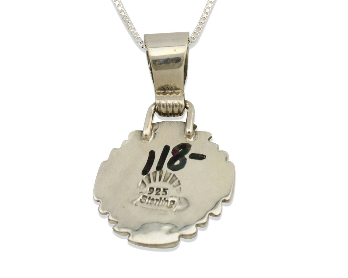 Navajo Necklace .925 Silver Damele Variscite Signed Sun C.1980's