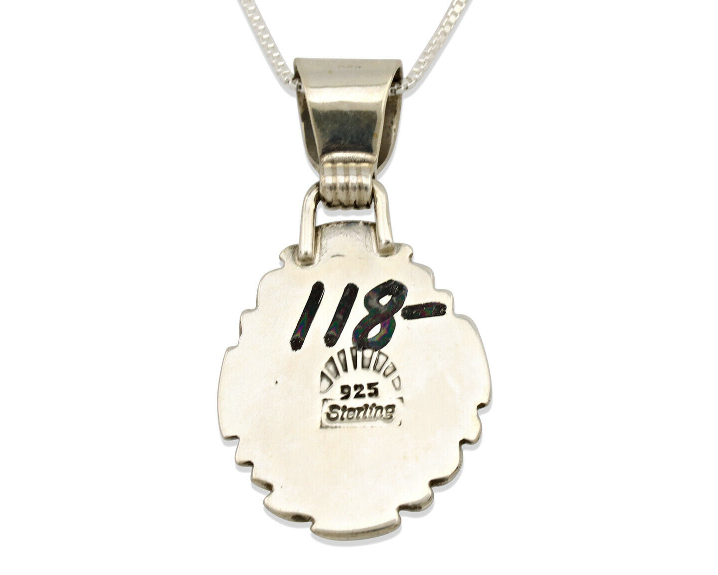 Navajo Necklace .925 Silver Damele Variscite Signed Sun C.1980's