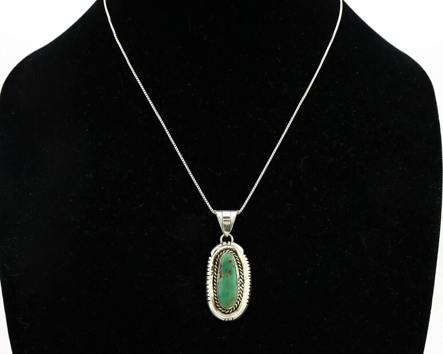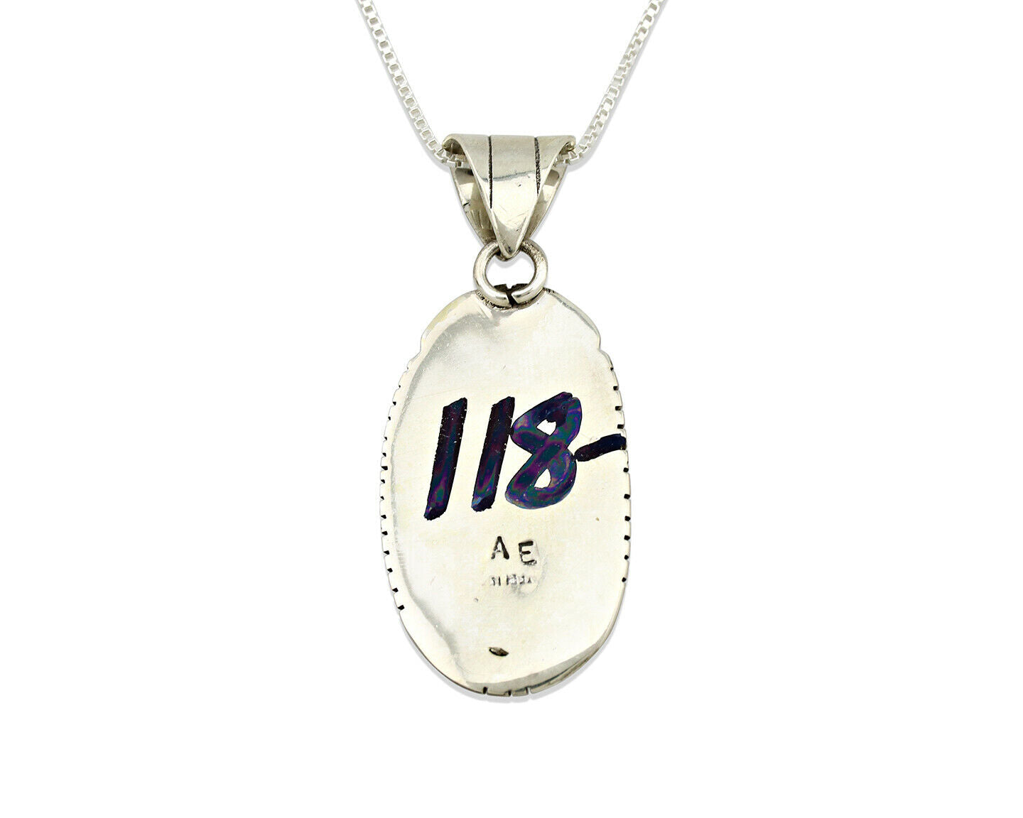 Navajo Necklace .925 Silver Green Turquoise Signed AE C.1980's