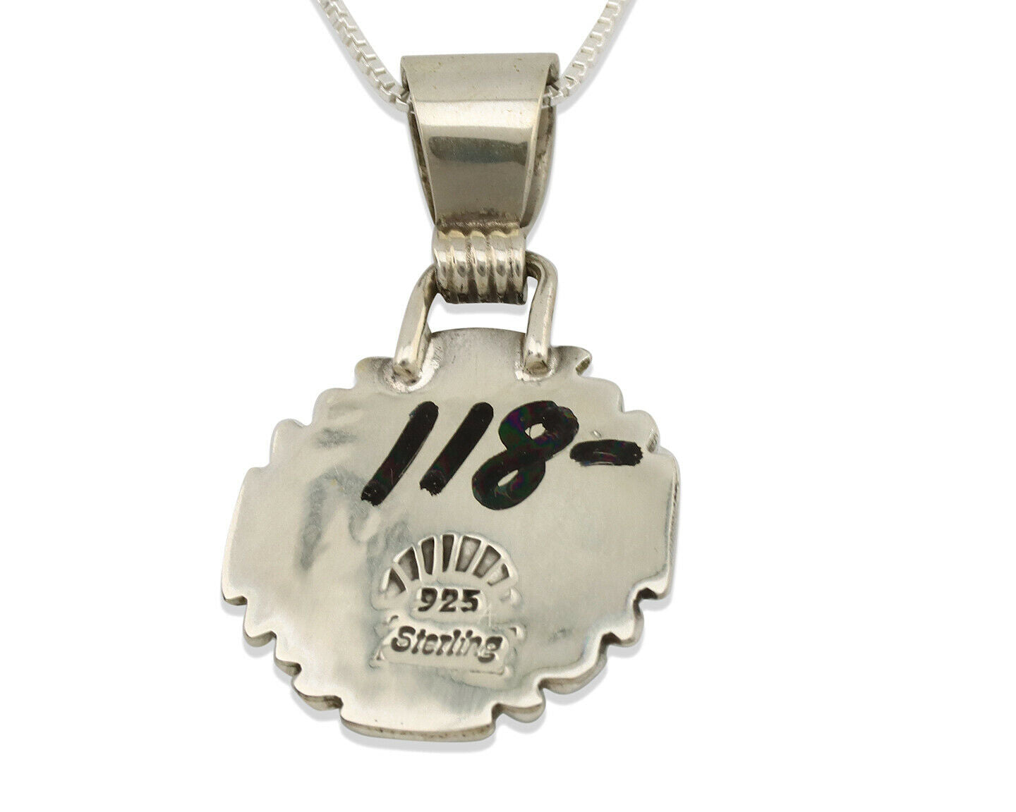 Navajo Necklace .925 Silver Green Variscite Signed Sun C.80's
