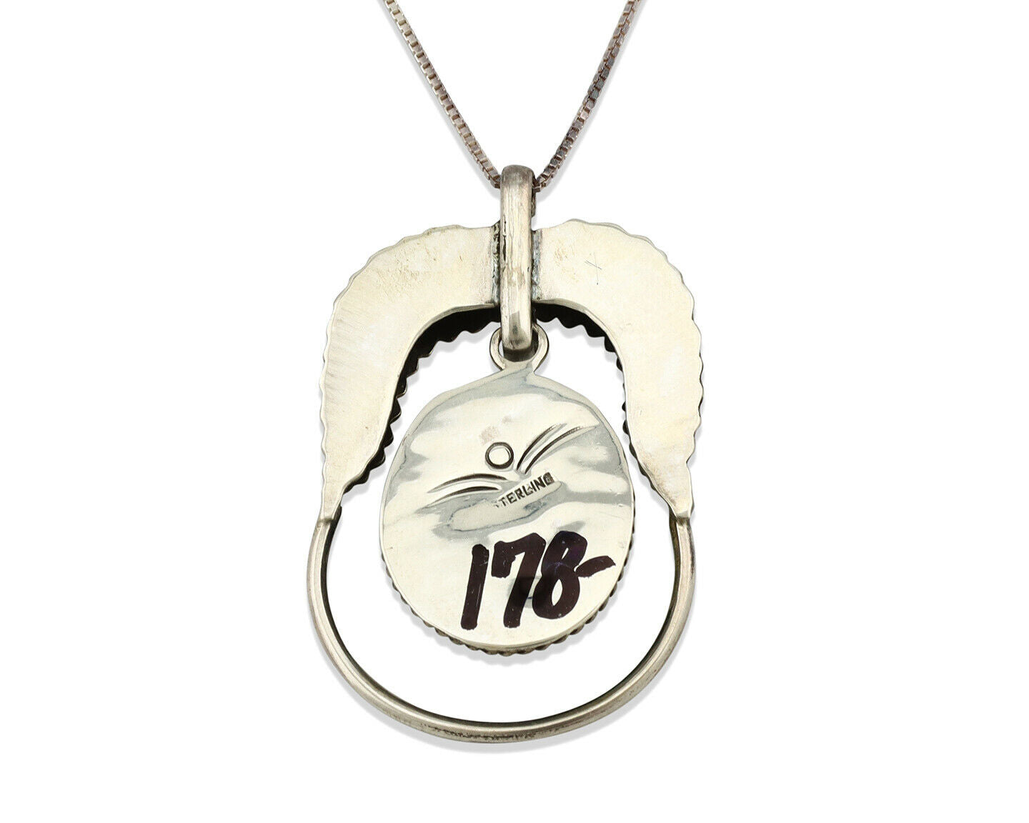 Navajo Necklace .925 Silver Kingman Turquoise Artist Signed Sun Rise C.80's