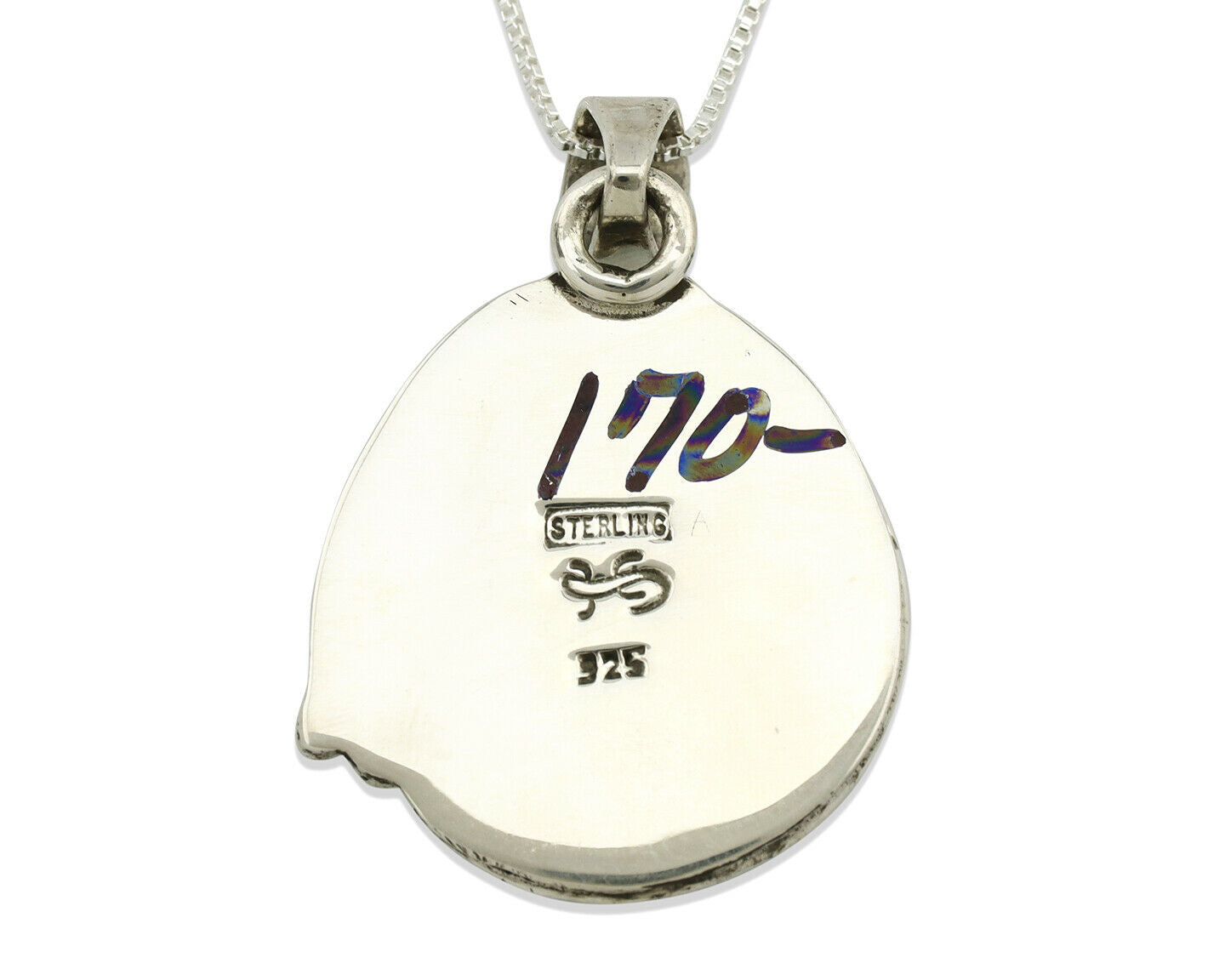 Navajo Necklace .925 Silver Kingman Turquoise Signed Tepee C.1980's