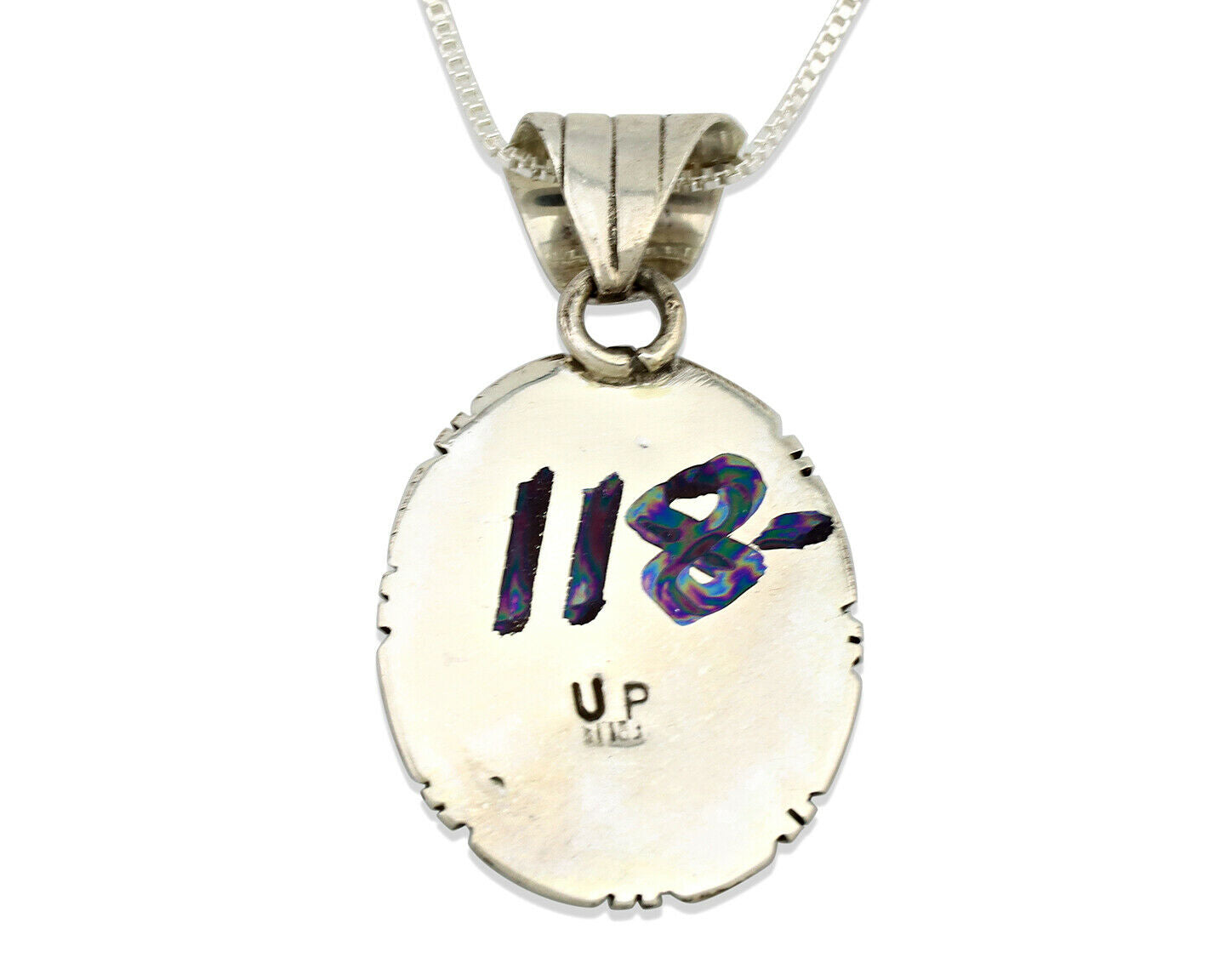 Navajo Necklace .925 Silver Kingman Turquoise Signed UP C.1980's