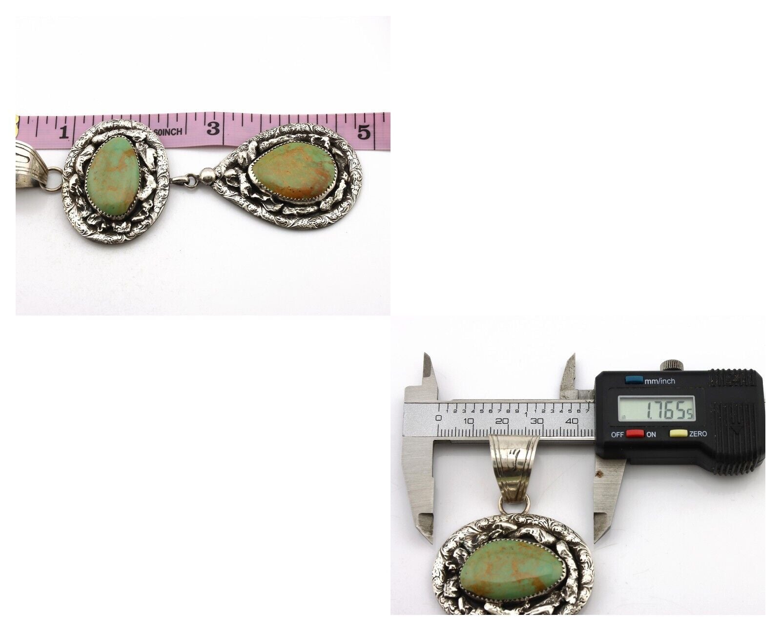 Navajo Pendant 925 Silver Manassa Turquoise Artist Signed JR C.80's