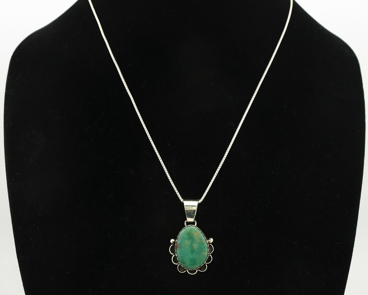 Navajo Necklace .925 Silver Manassas Turquoise Artist Signed Sunrise C.80's