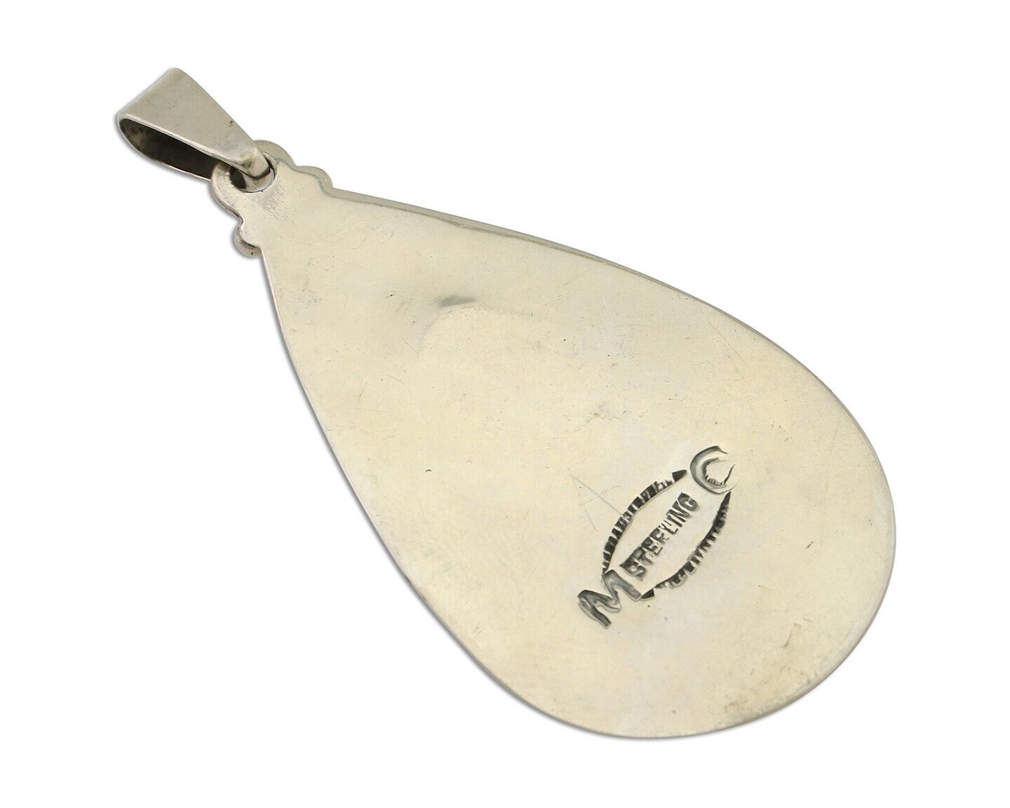 Navajo Pendant 925 Silver Blue Gem Turquoise Artist Signed MC C.80's